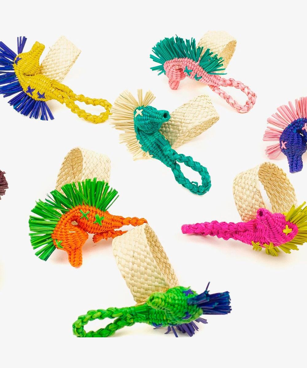 Transform your tableware with our exquisite napkin rings made from iraca, a natural fiber sourced from palm trees in South America. Handcrafted by skilled artisans, each napkin ring is intricately woven to create a unique and elegant design. Iraca's natural texture adds a touch of rustic charm to your table setting, while its durability ensures these napkin rings will last for years to come. Whether you're hosting a dinner party or enjoying a meal with family, these napkin rings will elevate your table décor to the next level. Our advice: Choose from a variety of colors and shapes to complement your table setting and complete the look with our matching iraca placemats and coasters. Please note that our Iraca Home products are not machine washable, but can be easily cleaned with a damp cloth.