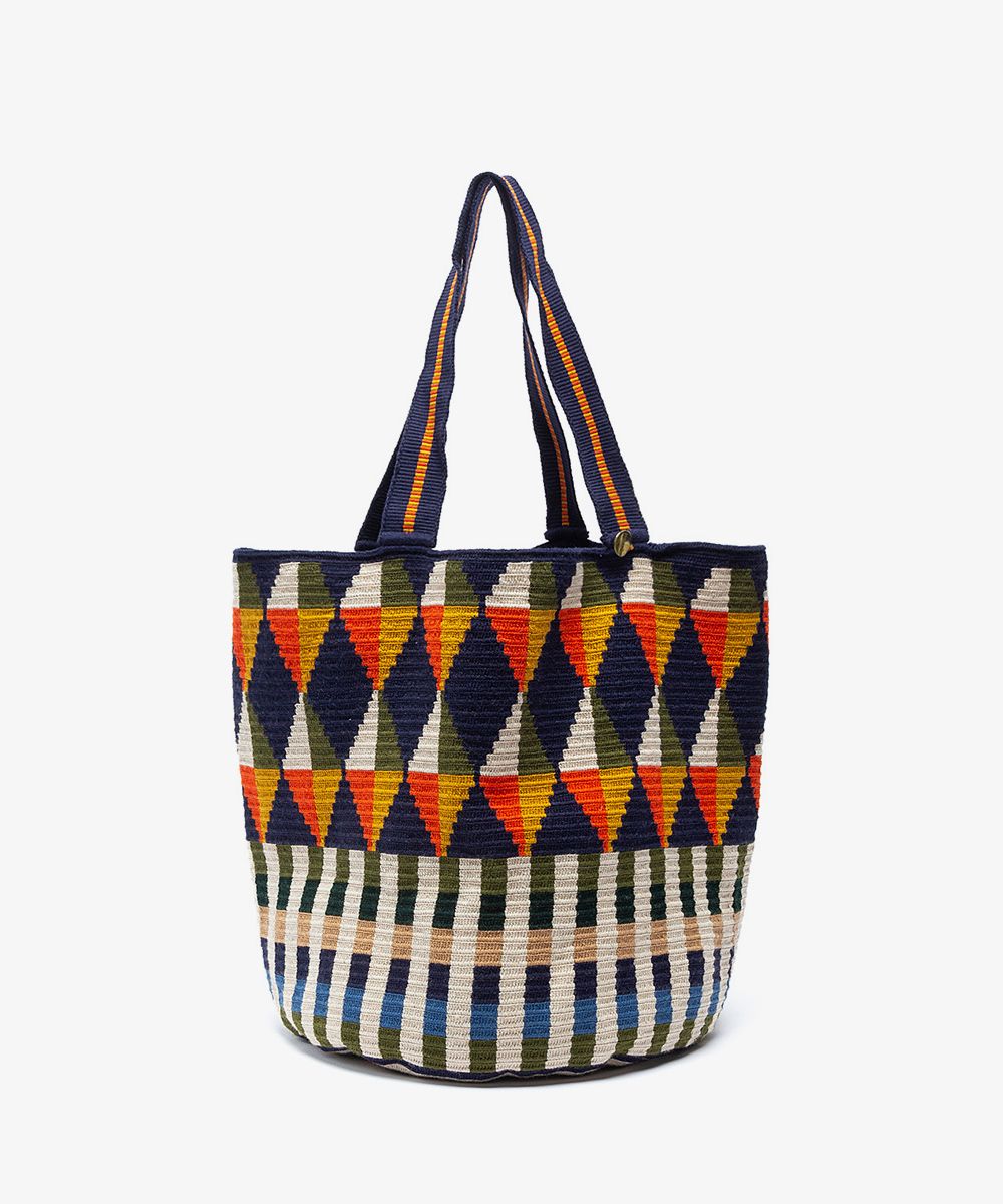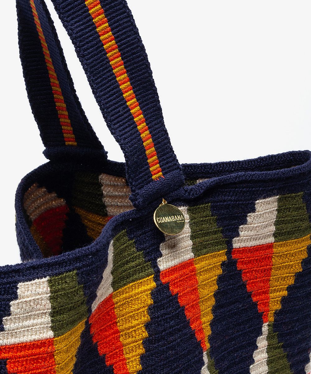 GUANABANA reinvents the classic tote bag, adding a boho-chic touch with geometrical and vibrant patterns. Designed in Madrid and hand-crocheted by Wayuu artisans in Colombia, our Tote Bag has a looser stitch and a long, comfortable Handle that is perfect for any activity. Enjoy this all-around, all-purpose, uncomplicated unisex bag. All our bags carry our distinctive bronze tag with GUANABANA'S leitmotiv: BE POSITIVE.