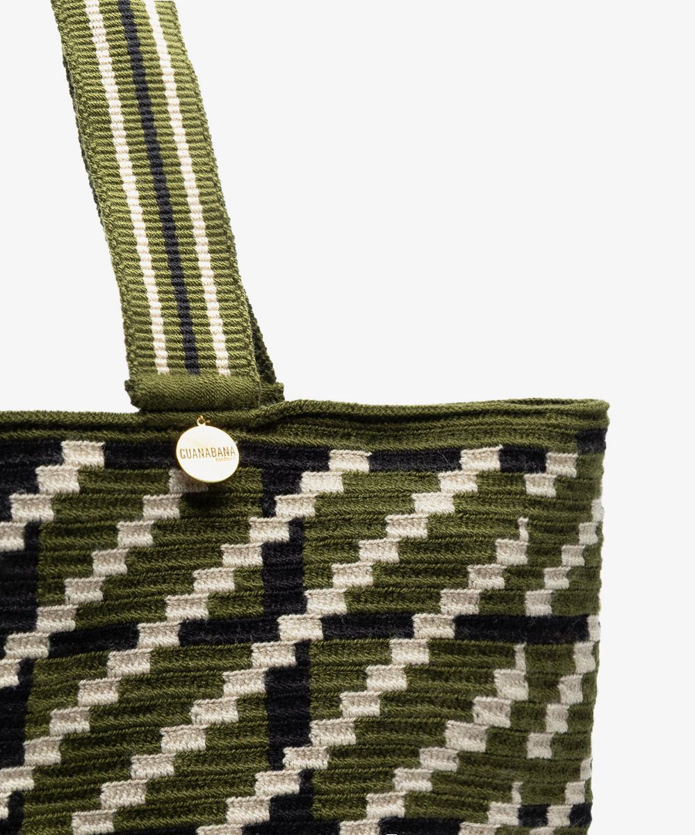 GUANABANA reinvents the classic tote bag, adding a boho-chic touch with geometrical and vibrant patterns. Designed in Madrid and hand-crocheted by Wayuu artisans in Colombia, our Tote Bag has a looser stitch and a long, comfortable Handle that is perfect for any activity. Enjoy this all-around, all-purpose, uncomplicated unisex bag. All our bags carry our distinctive bronze tag with GUANABANA'S leitmotiv: BE POSITIVE.