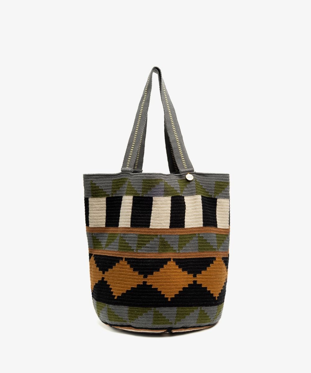 GUANABANA reinvents the classic tote bag, adding a boho-chic touch with geometrical and vibrant patterns. Designed in Madrid and hand-crocheted by Wayuu artisans in Colombia, our Tote Bag has a looser stitch and a long, comfortable Handle that is perfect for any activity. Enjoy this all-around, all-purpose, uncomplicated unisex bag. All our bags carry our distinctive bronze tag with GUANABANA'S leitmotiv: BE POSITIVE.
