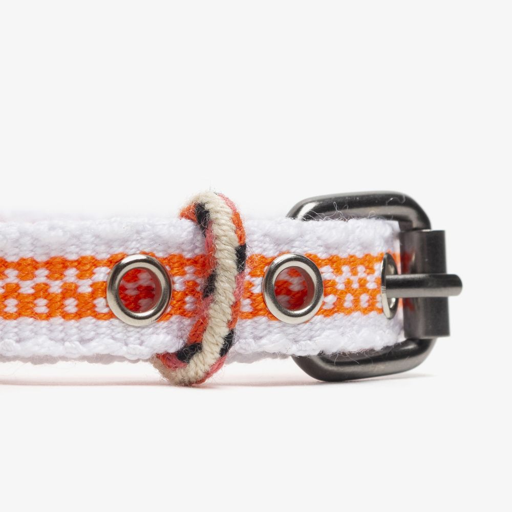 Guanábana offers a collection of meticulously handmade collars for pets. Each collar is crafted using traditional techniques on a hand loom for the ribbon, with all other essential details completed in our atelier to ensure safety during walks. Furthermore, they are machine washable.