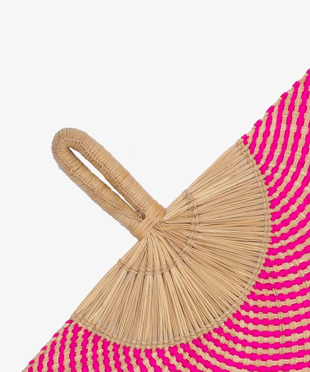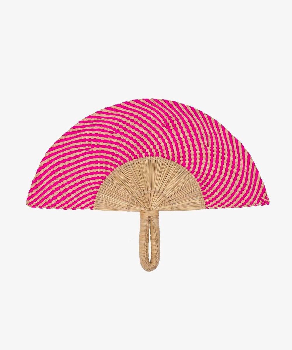 Nuestros abanicos están diseñados en exclusiva en Madrid y hechos a mano por artesanas en Colombia utilizando una técnica artesanal típica de la tradición colombiana: el tejido en iraca. Esta fibra natural proviene de la palma de iraca, una planta cuyas hojas son recolectadas y hervidas para obtener unos finos hilos, normalmente utilizados para tejer sombreros, cestos y otras artesanías. El proceso de tejido requiere de mucha dedicación y unas manos expertas que dan como resultado esta preciosa pieza de artesanía que te ayudará a afrontar los días más calurosos.