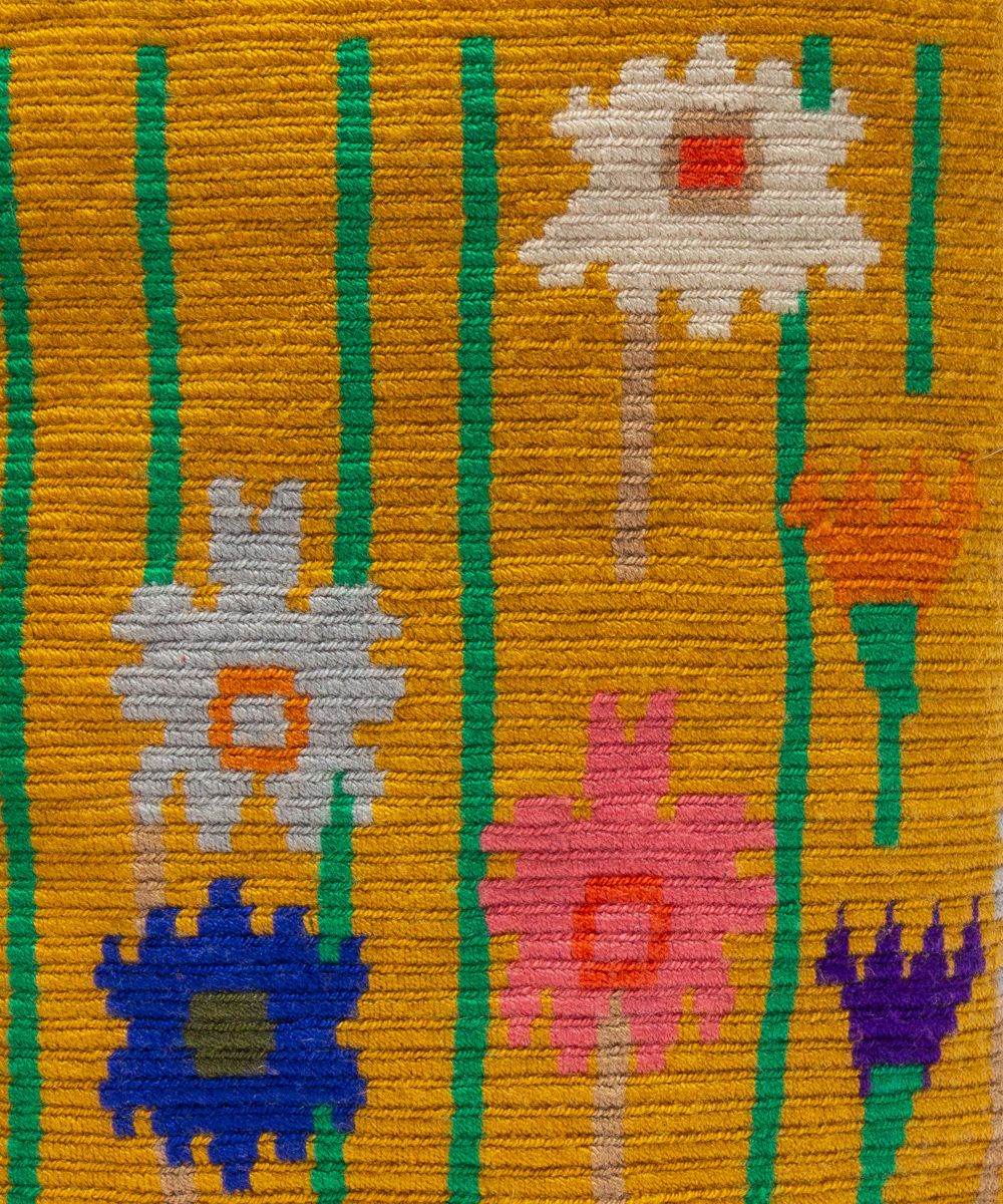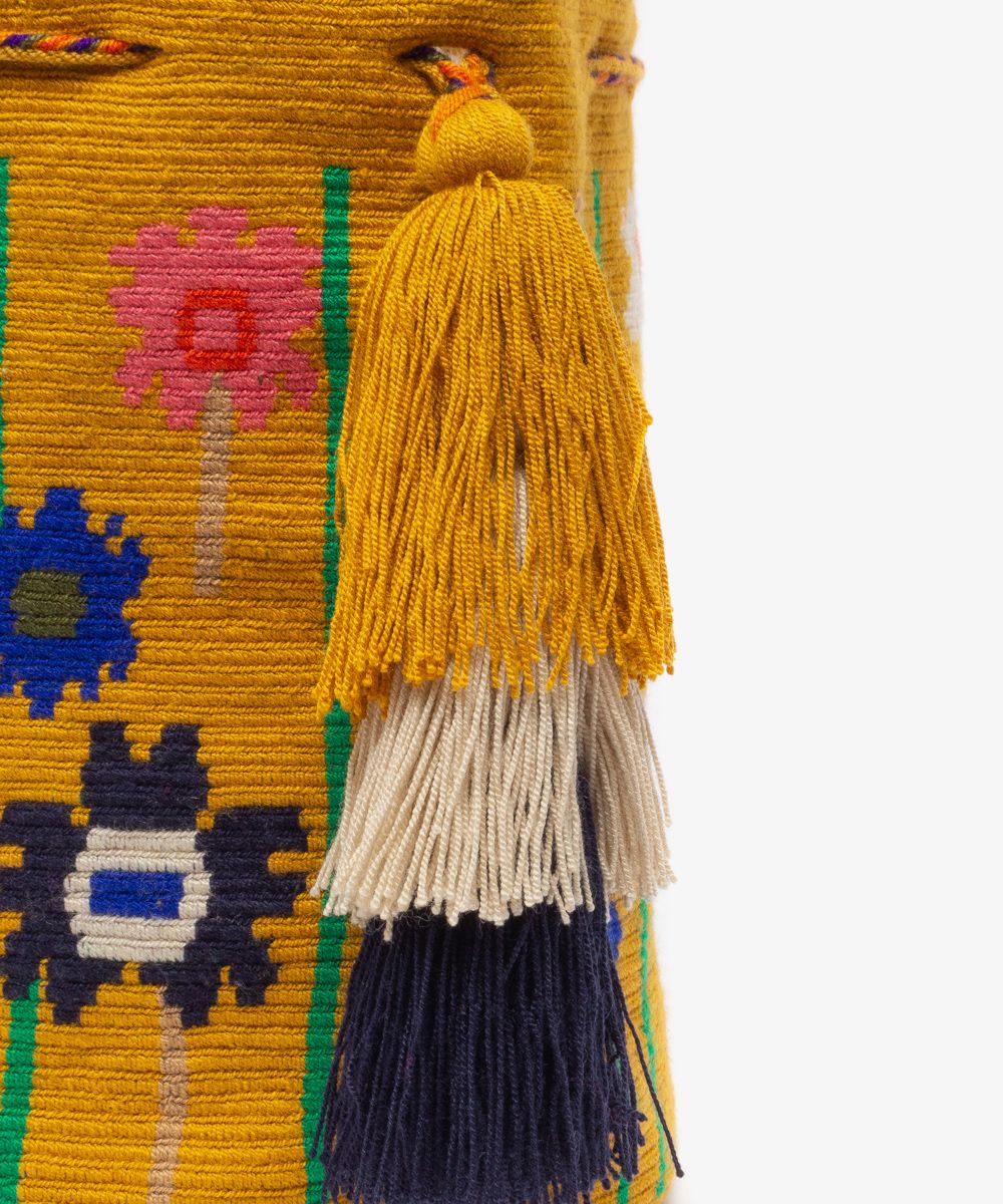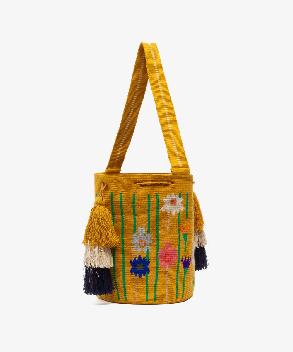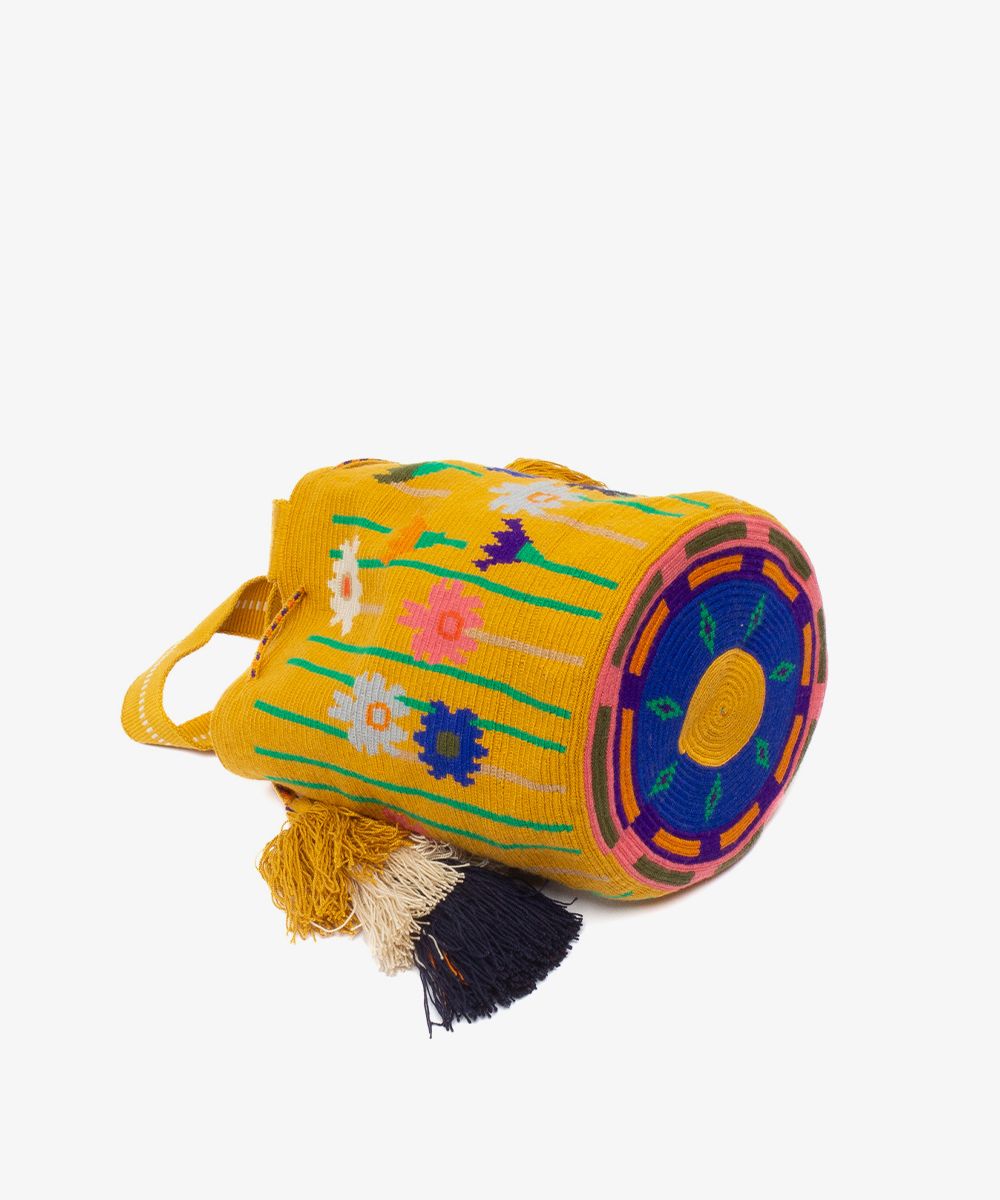 DISEÑADO EN MADRID - 100% HECHO A MANO POR ARTESANAS EN COLOMBIA. GUANÁBANA CREE EN LAS PEQUEÑAS DIFERENCIAS: LOS TAMAÑOS Y DISEÑOS PUEDEN TENER LIGERAS VARIACIONES CON EL MODELO DE LA FOTO. LAVADO A MÁQUINA EN AGUA FRÍA. Material: 100% acrílico Dimensión aproximada: Altura: 24 cm Diámetro: 24 cm Asa: 60 cm