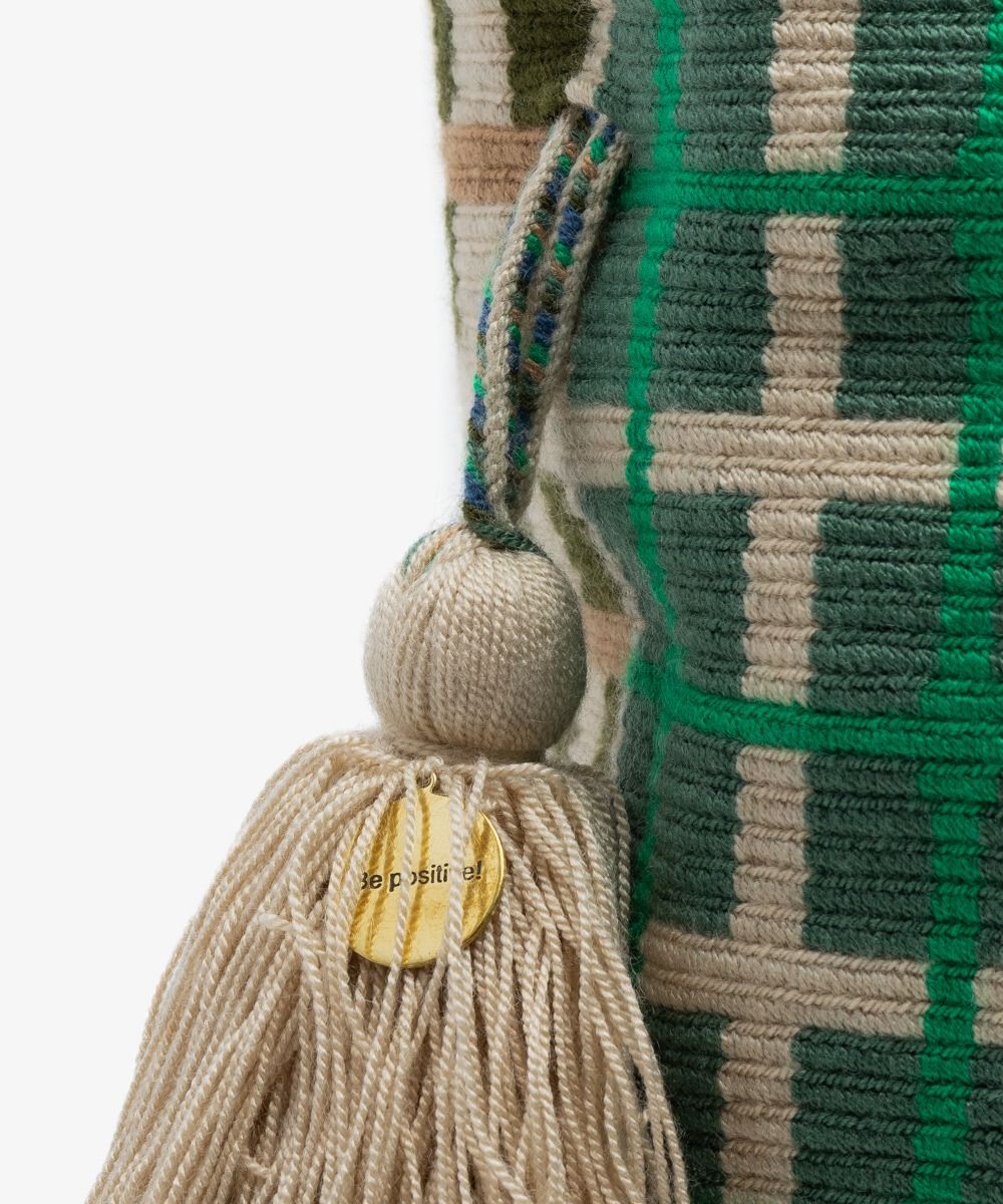 GUANABANA reinventa su clásico bolso cruzado L acortando su asa y añadiendo dos pompones irresistibles a sus lados. Este modelo, consistente con el original, tiene un punto delicado y muy resistente que permite a las artesanas Wayúu en Colombia tejer diseños y patrones con excepcional calidad. Revisa sus bases, no hay dos iguales! Todos los bolsos llevan nuestro característico sello en bronce con el leitmotiv de GUANABANA: BE POSITIVE.