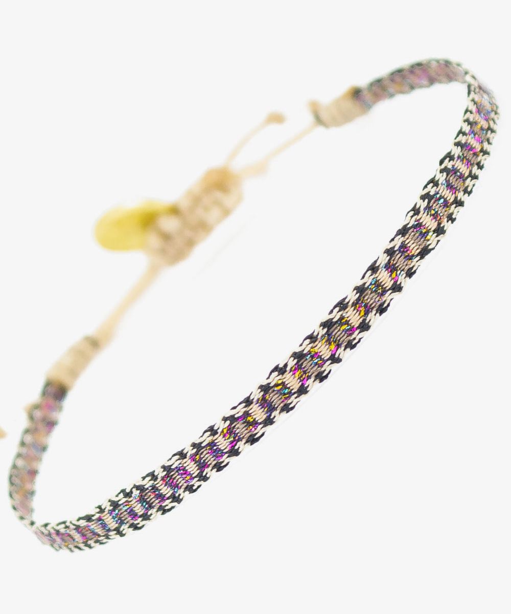 Esta pulsera está diseñada en nuestras oficinas centrales de Madrid. Tejida en un telar manual por artesanos en Colombia, utilizando técnicas antiguas. Cada pulsera está tejida con 40 hilos y cuenta con un cierre para ajustarla a la muñeca. Nuestro consejo: Puedes llevarla sola o mezclándola con varias más!