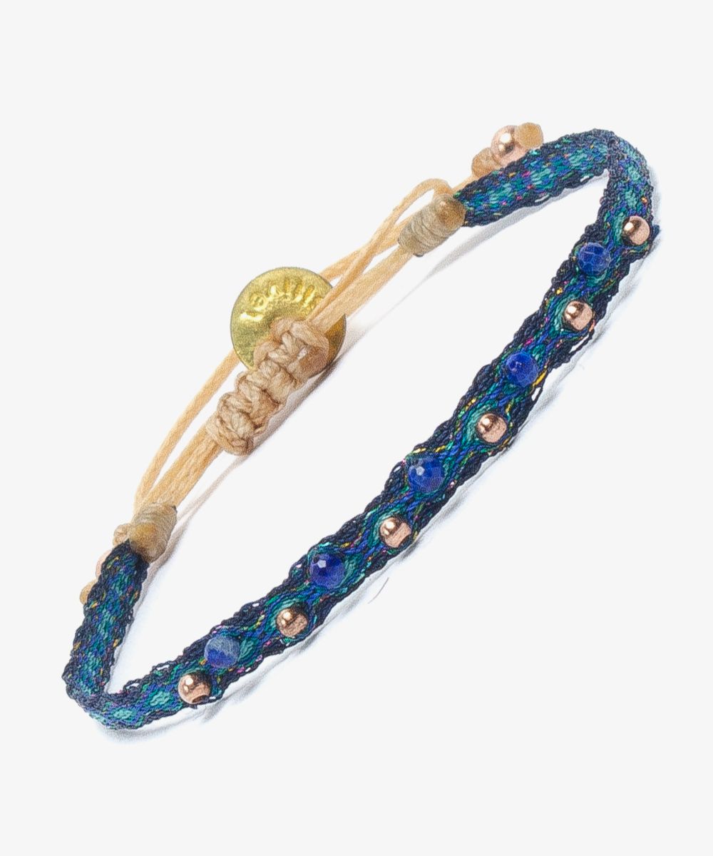 Guanábana da un giro a su tradicional ARGANTINA y la convierte en un accesorio brillante y colorido, con cuentas de piedras semipreciosas que aportan sofisticación a la pulsera. La argantina ALAMEIN está tejida a mano por artesanas usando un telar manual y acabada con un cierre ajustable y una medallita en bronce con nuestro mantra para que no lo olvides: BE POSITIVE.