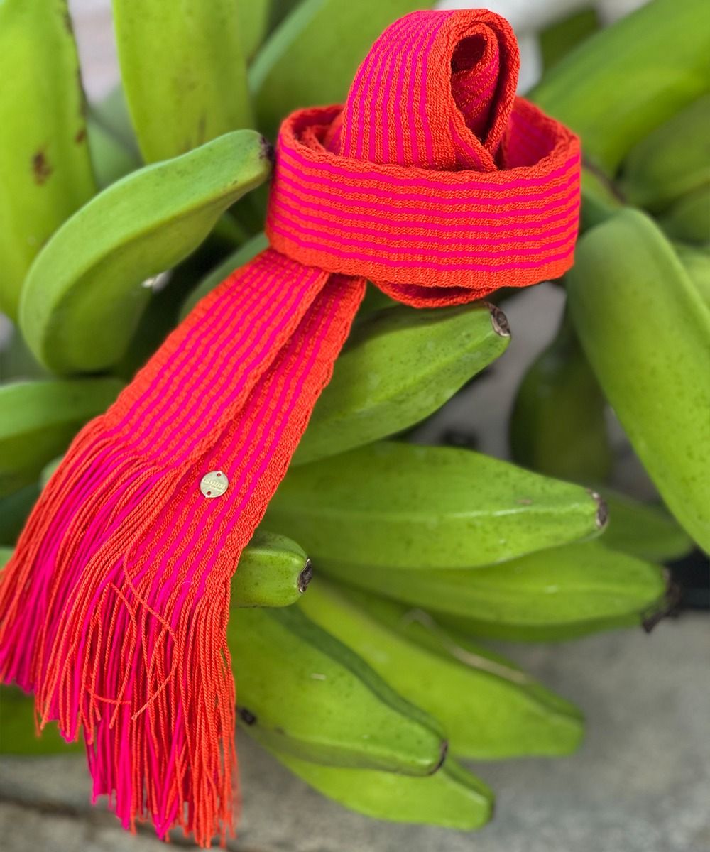 Guanabana x Nimo With Love Nimo y Guanábana comparten la misma visión positiva del mundo. Un mundo lleno de alegría y pasión por lo artesano y único. De esta visión, nace la colaboración Guanabana x Nimo With Love, una colección cápsula con prendas de edición limitada que nos traslada a Colombia a través de los estampados que Nicole ha diseñado inspirándose en el universo de luz y color de Guanabana. Cada cinturón está hecho a mano por artesanas, utilizando una técnica tradicional y un telar manual. Son un accesorio atemporal y especial, que mezcla las tendencias más actuales con estampados de inspiración étnica y un toque boho, y que convertirá cualquier outfit en algo más que ropa.