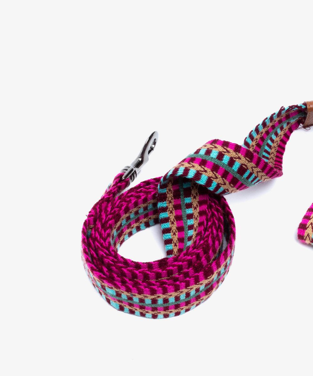 Para nuestras mascotas, Guanábana ofrece una colección de correas. Cada correa está hecha a mano una a una, utilizando para la cinta una técnica tradicional en un telar manual, y terminando en nuestro atelier todos los detalles como el asa y el mosqueton de Zamac.