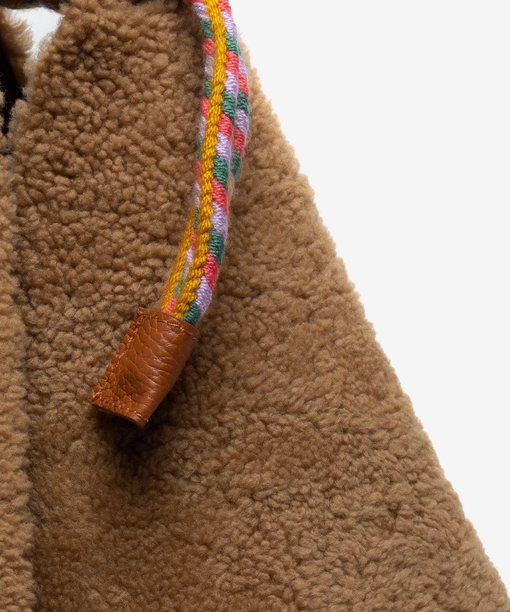 Detalles: - Material: 100% piel de cordero español - Técnica: Curtiduría artesanal y confección tradicional - Acabado: Tintes vegetales naturales - Talla única. - Origen: Hecho en España - Características: Ligero, textura suave y flexible - Medidas (ancho por alto): 50cm X 47cm Cuidados: - Evitar el contacto con agua o fuentes directas de calor - No lavar ni planchar - Limpiar con un paño seco o llevar a centros especializados en piel - Guardar en un lugar fresco y ventilado, protegido de la luz solar