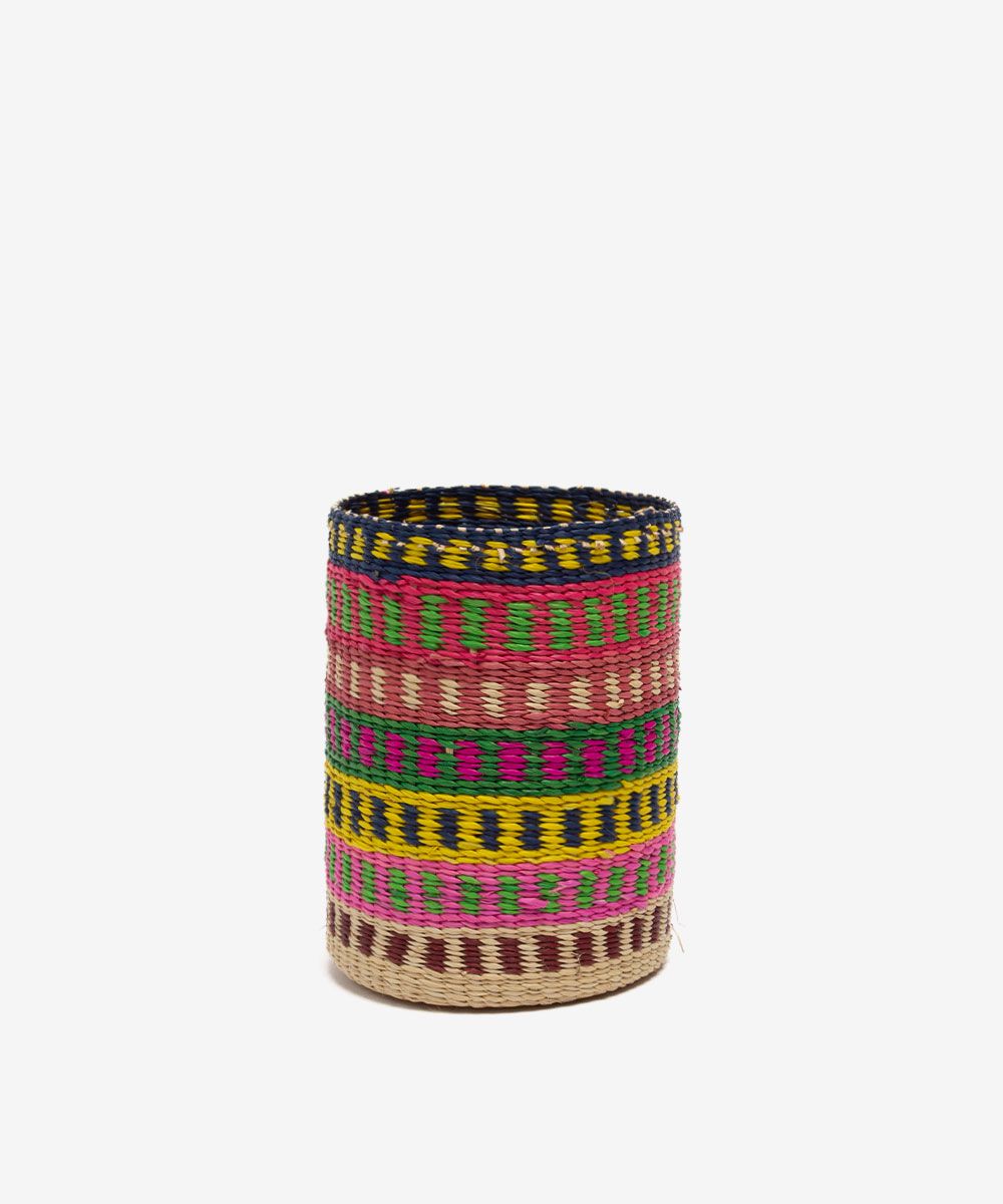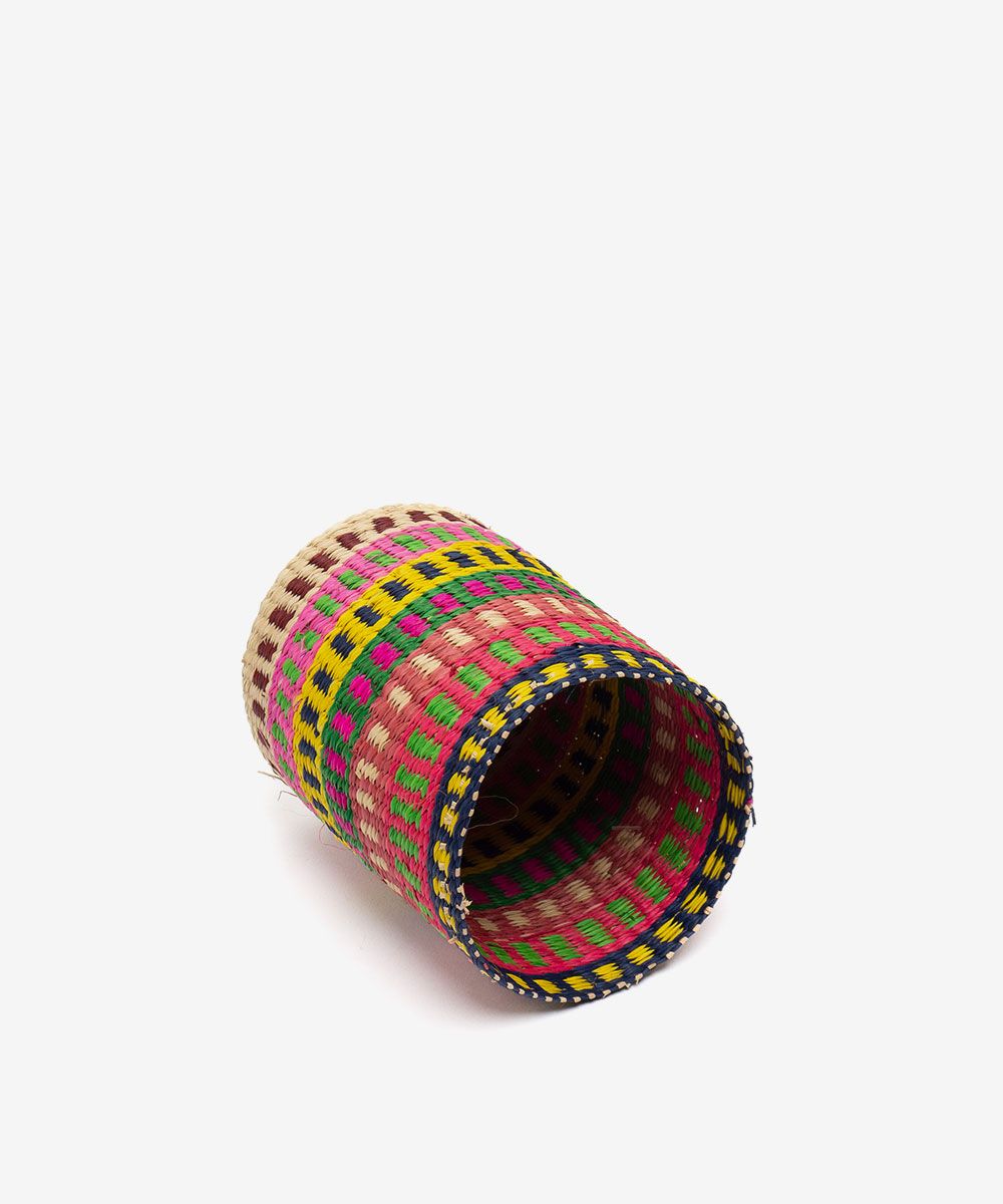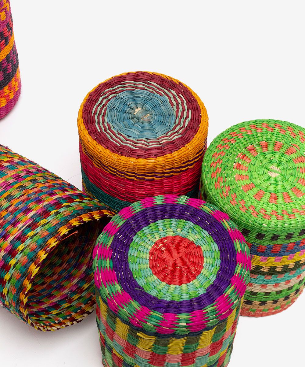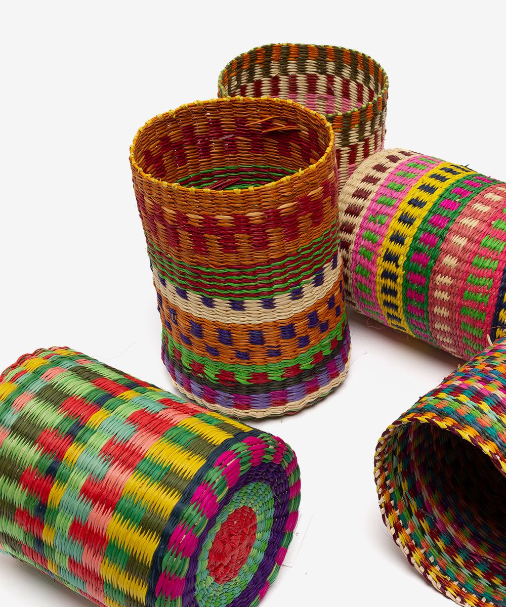 Nuestros complementos para casa están hechos a mano por artesanas utilizando la técnica de tejido en iraca, típica de la tradición colombiana. La iraca, o paja toquilla, es una fibra natural que proviene de la “Carludovica palmata”, de cuyas hojas se obtienen unos finos hilos que son teñidos para darles color. Una vez secos, los artesanos entretejen los hilos con los diferentes colores para crear nuestros articulos.