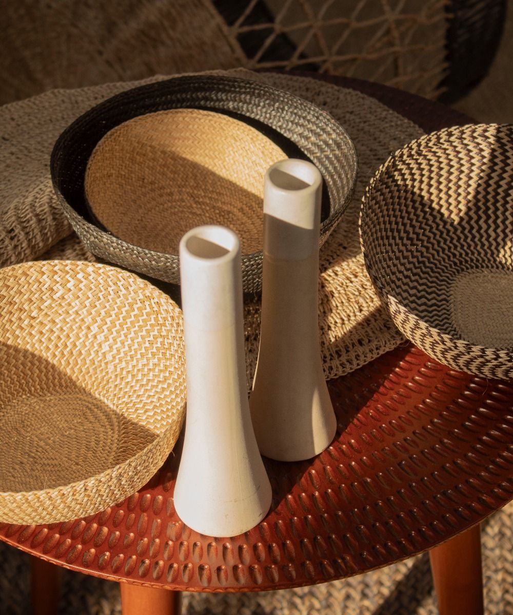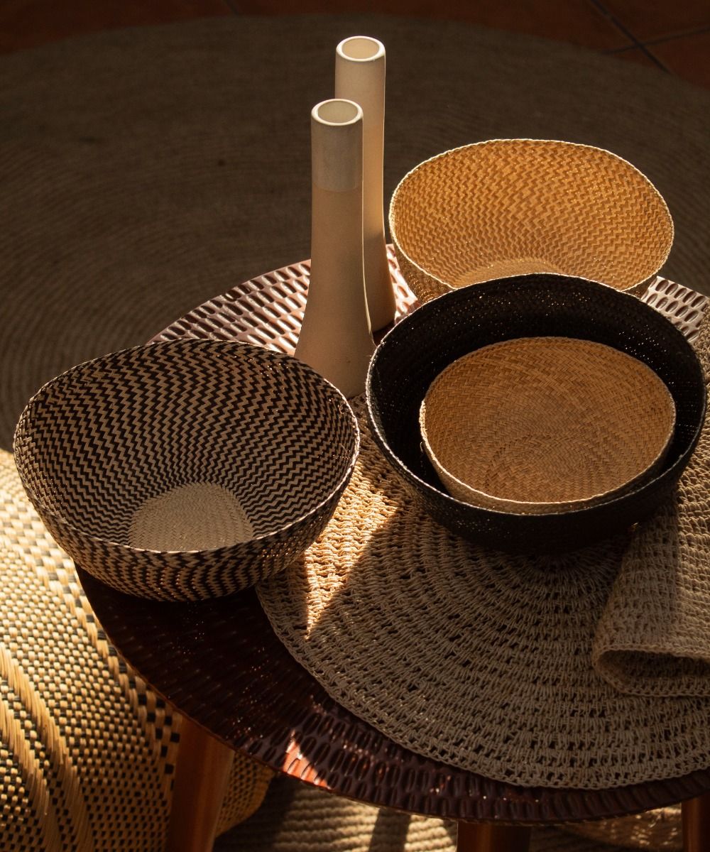 Nuestros complementos para casa están hechos a mano por artesanas utilizando la técnica de tejido en iraca, típica de la tradición colombiana. La iraca, o paja toquilla, es una fibra natural que proviene de la “Carludovica palmata”, de cuyas hojas se obtienen unos finos hilos que son teñidos para darles color. Una vez secos, los artesanos entretejen los hilos con los diferentes colores para crear nuestros bowls. Usos diferentes: Utilízala para poner el pan, tus joyas, mostrar tus aperitivos, como accesorio de baño o cualquier otra cosa que se te ocurra.Para la limpieza se aconseja utilizar un paño húmedo. No es lavable.