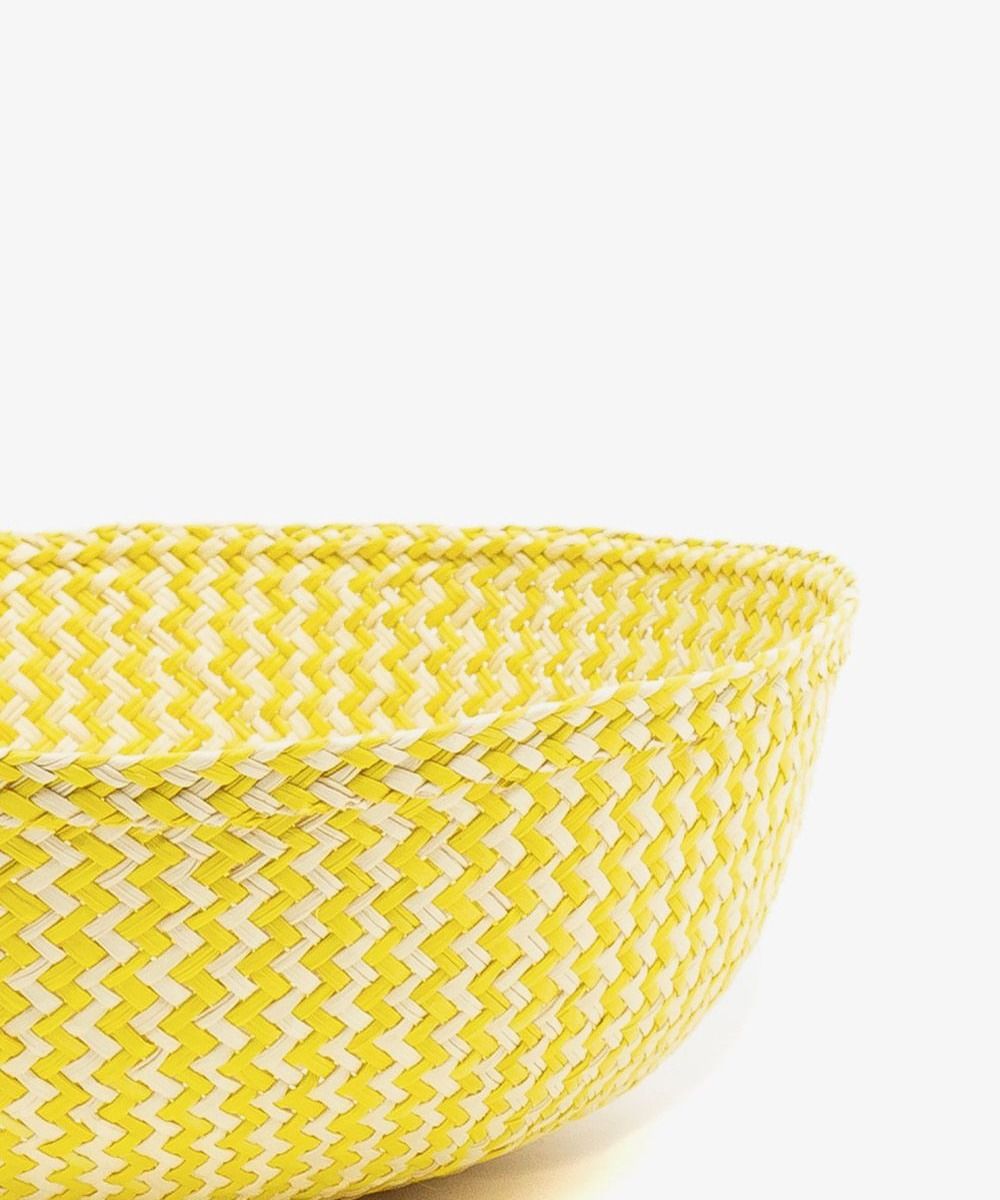 Nuestros complementos para casa están hechos a mano por artesanas utilizando la técnica de tejido en iraca, típica de la tradición colombiana. La iraca, o paja toquilla, es una fibra natural que proviene de la “Carludovica palmata”, de cuyas hojas se obtienen unos finos hilos que son teñidos para darles color. Una vez secos, los artesanos entretejen los hilos con los diferentes colores para crear nuestros bowls.