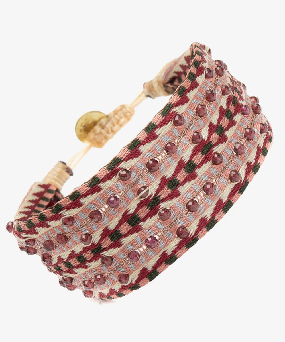 Guanábana da un giro a su tradicional ARGANTINA y la convierte en un accesorio brillante y colorido, con cuentas de piedras semipreciosas que aportan sofisticación a la pulsera. La argantina 2CMX está tejida a mano por artesanas usando un telar manual y acabada con un cierre ajustable y una medallita en bronce con nuestro mantra para que no lo olvides: BE POSITIVE.