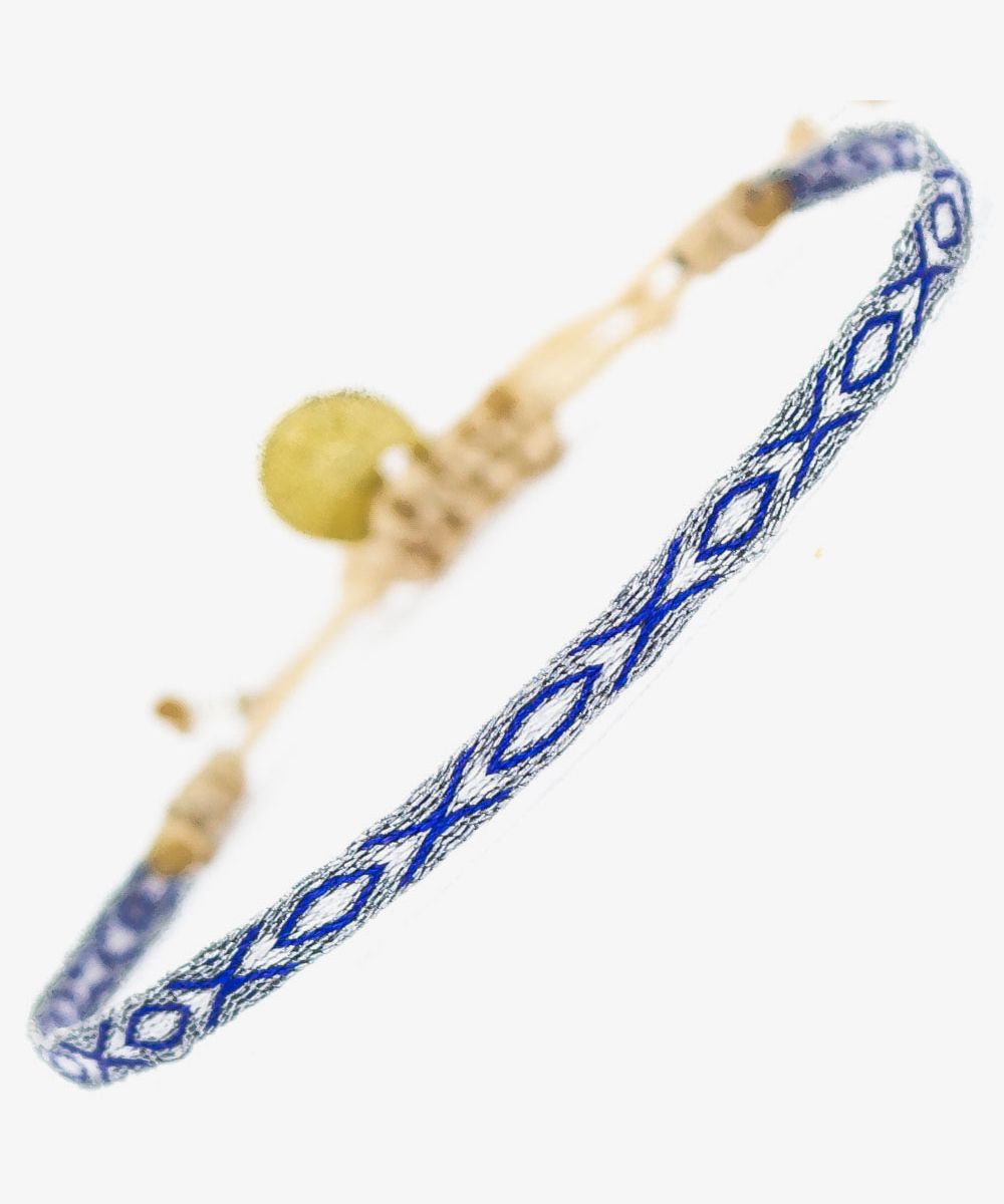 Esta pulsera está diseñada en nuestras oficinas centrales de Madrid. Tejida en un telar manual por artesanos en Colombia, utilizando técnicas antiguas. Cada pulsera está tejida con 40 hilos y cuenta con un cierre para ajustarla a la muñeca. Nuestro consejo: Puedes llevarla sola o mezclándola con varias más! Los detalles de nuestras pulseras hechas a mano, las hacen piezas únicas. Podrás reconocer si es una Pulsera Guanabana por sus diseños especiales y por una pequeña medalla que incluye nuestro logotipo y un mensaje "Be Positive" para que lo repitas como un Mantra.