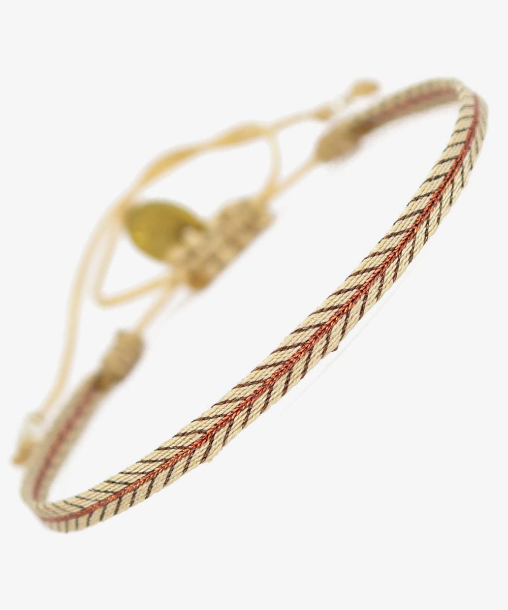 Esta pulsera está diseñada en nuestras oficinas centrales de Madrid. Tejida en un telar manual por artesanos en Colombia, utilizando técnicas antiguas. Cada pulsera está tejida con 40 hilos y cuenta con un cierre para ajustarla a la muñeca. Nuestro consejo: Puedes llevarla sola o mezclándola con varias más!