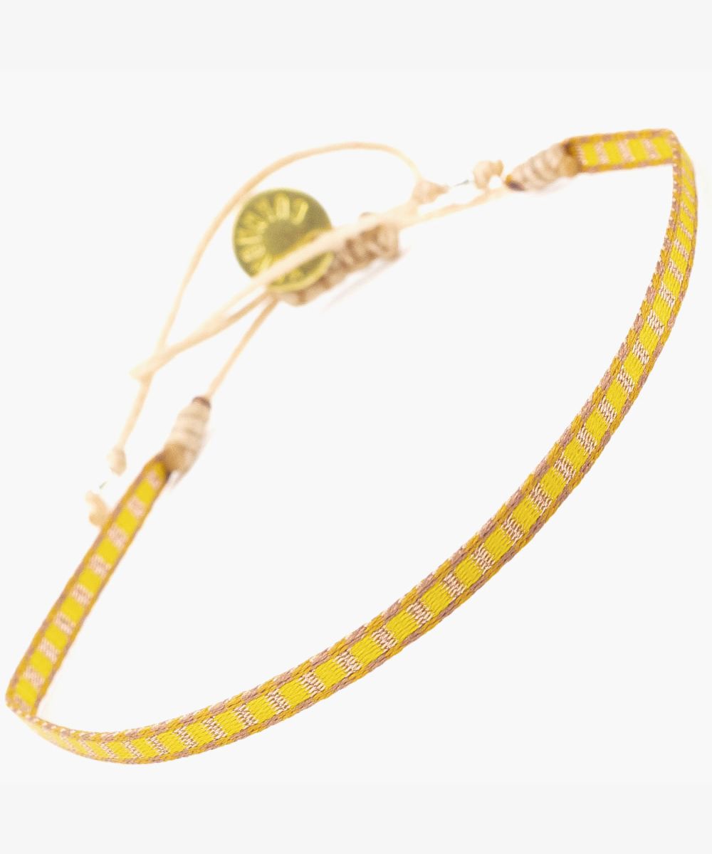 Esta pulsera está diseñada en nuestras oficinas centrales de Madrid. Tejida en un telar manual por artesanos en Colombia, utilizando técnicas antiguas. Cada pulsera está tejida con 40 hilos y cuenta con un cierre para ajustarla a la muñeca. Nuestro consejo: Puedes llevarla sola o mezclándola con varias más!