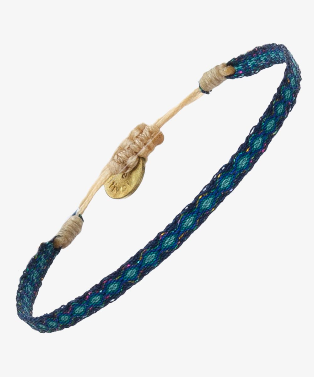 Esta pulsera está diseñada en nuestras oficinas centrales de Madrid. Tejida en un telar manual por artesanos en Colombia, utilizando técnicas antiguas. Cada pulsera está tejida con 40 hilos y cuenta con un cierre para ajustarla a la muñeca. Nuestro consejo: Puedes llevarla sola o mezclándola con varias más!