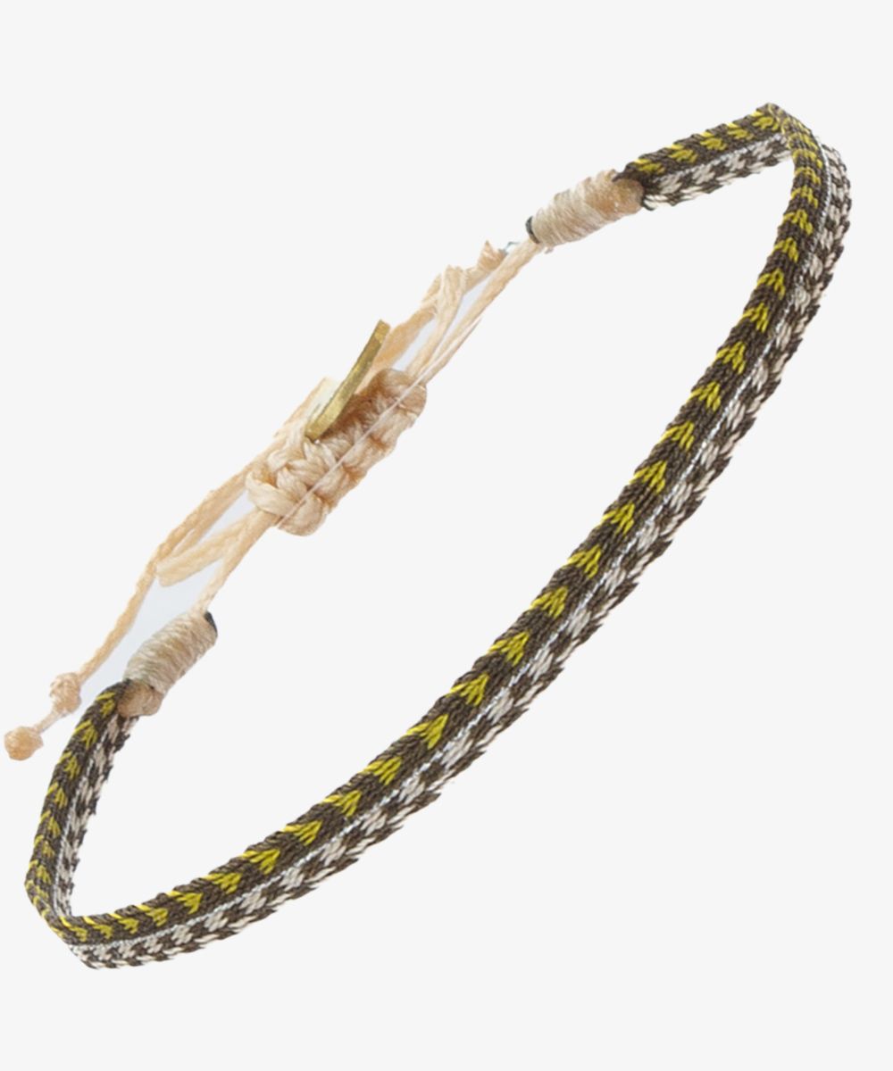 Esta pulsera está diseñada en nuestras oficinas centrales de Madrid. Tejida en un telar manual por artesanos en Colombia, utilizando técnicas antiguas. Cada pulsera está tejida con 40 hilos y cuenta con un cierre para ajustarla a la muñeca. Nuestro consejo: Puedes llevarla sola o mezclándola con varias más!