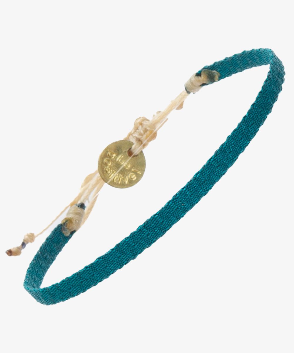 Esta pulsera está diseñada en nuestras oficinas centrales de Madrid. Tejida en un telar manual por artesanos en Colombia, utilizando técnicas antiguas. Cada pulsera está tejida con 40 hilos y cuenta con un cierre para ajustarla a la muñeca. Nuestro consejo: Puedes llevarla sola o mezclándola con varias más!