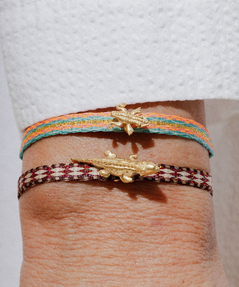 Con motivo del 20 aniversario de Guanabana, presentamos nuestra colección Esencias. Una edición limitada de pulseras que combina nuevos modelos de nuestras míticas Argantinas 120 con reproducciones de piezas de arte precolombino del Museo del Oro de Bogotá creadas específicamente para nuestra colección de pulseras. Estas exclusivas piezas están realizadas a mano por expertos orfebres colombianos con la técnica de la cera perdida. Elaboradas en plata 925 y enchapadas en oro de 24 kilates. Gran parte de la herencia cultural de Colombia viene dada por las culturas precolombinas, que utilizaron el oro como soporte principal de sus representaciones simbólicas de animales, que estaban asociados a simbologías. ¡Elige tu pieza y que su energía te acompañe!