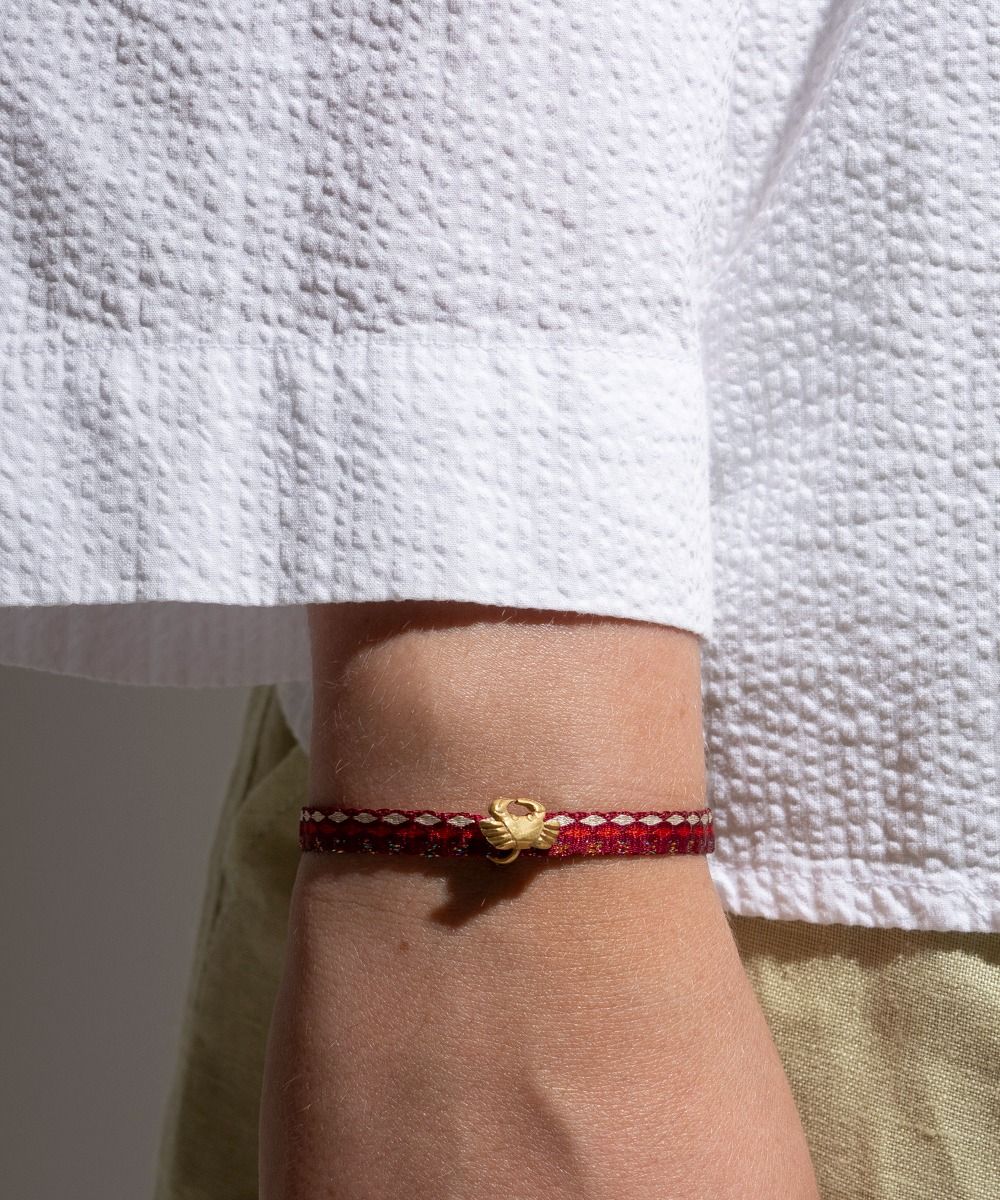 Este producto consta de pulsera + charm en plata 925 y enchapado en oro de 24 kilates. Para preservar su brillo, te recomendamos evitar usarla durante actividades como: - Deporte, actividades acuáticas (piscina, mar…) o actividades manuales (jardinería, limpieza, bricolaje…). - Llevarla en la ducha o baño. Te recomendamos evitar exponer tu joya a: - Productos corrosivos o químicos presentes en productos de limpieza o cosméticos (limpiadores, perfumes, cremas…). Para evitar dañar tu charm, es imprescindible no intentar ajustarlo o modificar su forma. La pátina puede desvanecerse con el tiempo, es un resultado normal del desgaste natural y dependerá del cuidado que le des a tu pieza. Puedes limpiar tu charm frotándolo con un paño suave.