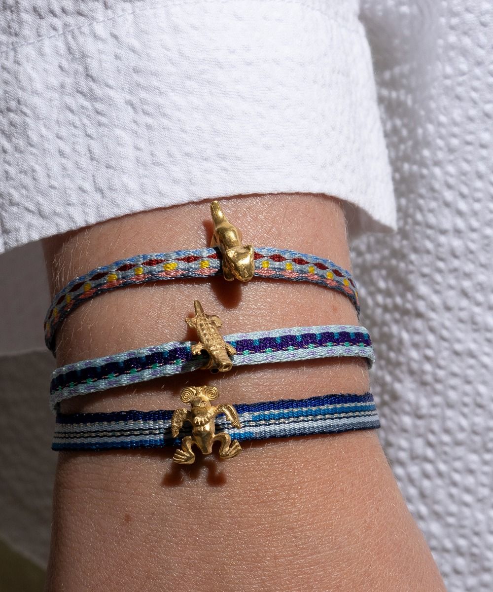 Con motivo del 20 aniversario de Guanabana, presentamos nuestra colección Esencias. Una edición limitada de pulseras que combina nuevos modelos de nuestras míticas Argantinas 120 con reproducciones de piezas de arte precolombino del Museo del Oro de Bogotá creadas específicamente para nuestra colección de pulseras. Estas exclusivas piezas están realizadas a mano por expertos orfebres colombianos con la técnica de la cera perdida. Elaboradas en plata 925 y enchapadas en oro de 24 kilates. Gran parte de la herencia cultural de Colombia viene dada por las culturas precolombinas, que utilizaron el oro como soporte principal de sus representaciones simbólicas de animales, que estaban asociados a simbologías. ¡Elige tu pieza y que su energía te acompañe!