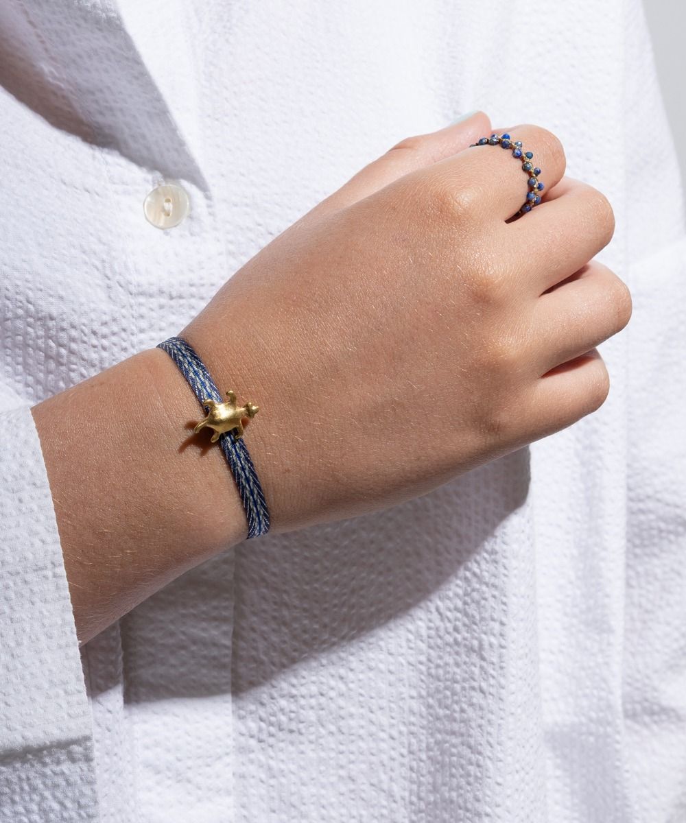 Este producto consta de pulsera + charm en plata 925 y enchapado en oro de 24 kilates. Para preservar su brillo, te recomendamos evitar usarla durante actividades como: - Deporte, actividades acuáticas (piscina, mar…) o actividades manuales (jardinería, limpieza, bricolaje…). - Llevarla en la ducha o baño. Te recomendamos evitar exponer tu joya a: - Productos corrosivos o químicos presentes en productos de limpieza o cosméticos (limpiadores, perfumes, cremas…). Para evitar dañar tu charm, es imprescindible no intentar ajustarlo o modificar su forma. La pátina puede desvanecerse con el tiempo, es un resultado normal del desgaste natural y dependerá del cuidado que le des a tu pieza. Puedes limpiar tu charm frotándolo con un paño suave.