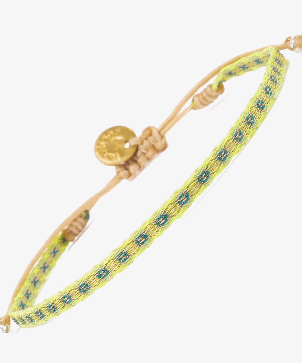 Esta pulsera está diseñada en nuestras oficinas centrales de Madrid. Tejida en un telar manual por artesanos en Colombia, utilizando técnicas antiguas. Cada pulsera está tejida con 40 hilos y cuenta con un cierre para ajustarla a la muñeca. Nuestro consejo: Puedes llevarla sola o mezclándola con varias más!
