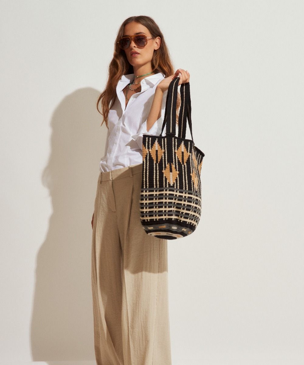 Gracias a las manos de cientos de mujeres Wayuu en Colombia y a los diseñadores de GUANÁBANA en Madrid, nuestro bolso clásico se presenta en una versión más pequeña. Tejido a mano por artesanas en Colombia, los colores y patrones de este bolso, y su asa larga, lo convierten en un imprescindible que puedes usar en cualquiera ocasión. Revisa su base y admira las diferencias que trae cada uno de ellos. Este bolso cierra con dos pompones tejidos y nuestro sello en bronce con el leitmotiv de GUANABANA: BE POSITIVE.