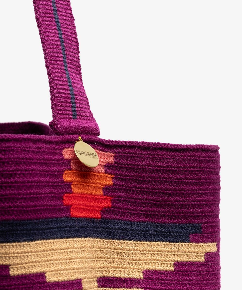 Gracias a las manos de cientos de mujeres Wayuu en Colombia y a los diseñadores de GUANÁBANA en Madrid, nuestro bolso clásico se presenta en una versión más pequeña. Tejido a mano por artesanas en Colombia, los colores y patrones de este bolso, y su asa larga, lo convierten en un imprescindible que puedes usar en cualquiera ocasión. Revisa su base y admira las diferencias que trae cada uno de ellos. Este bolso cierra con dos pompones tejidos y nuestro sello en bronce con el leitmotiv de GUANABANA: BE POSITIVE.