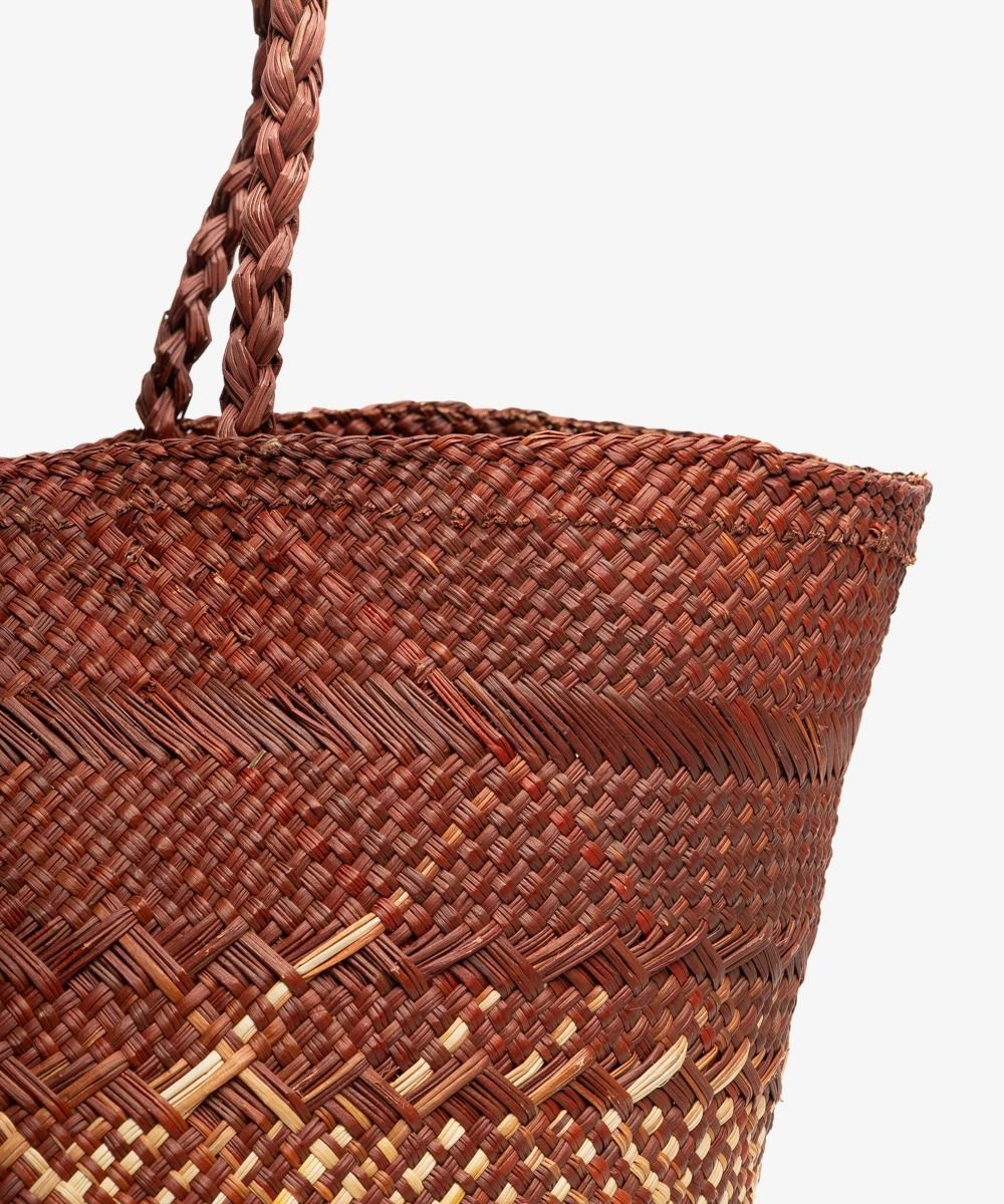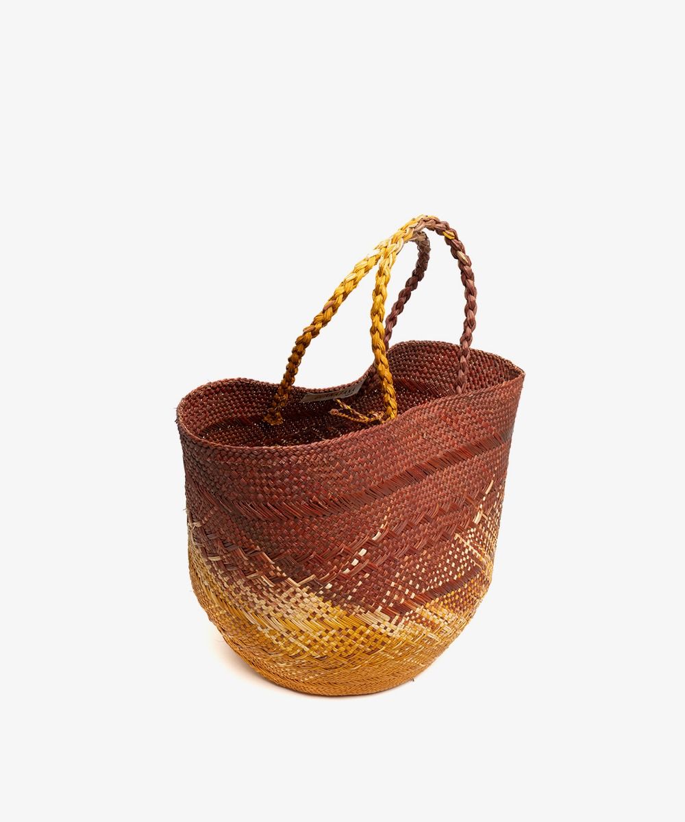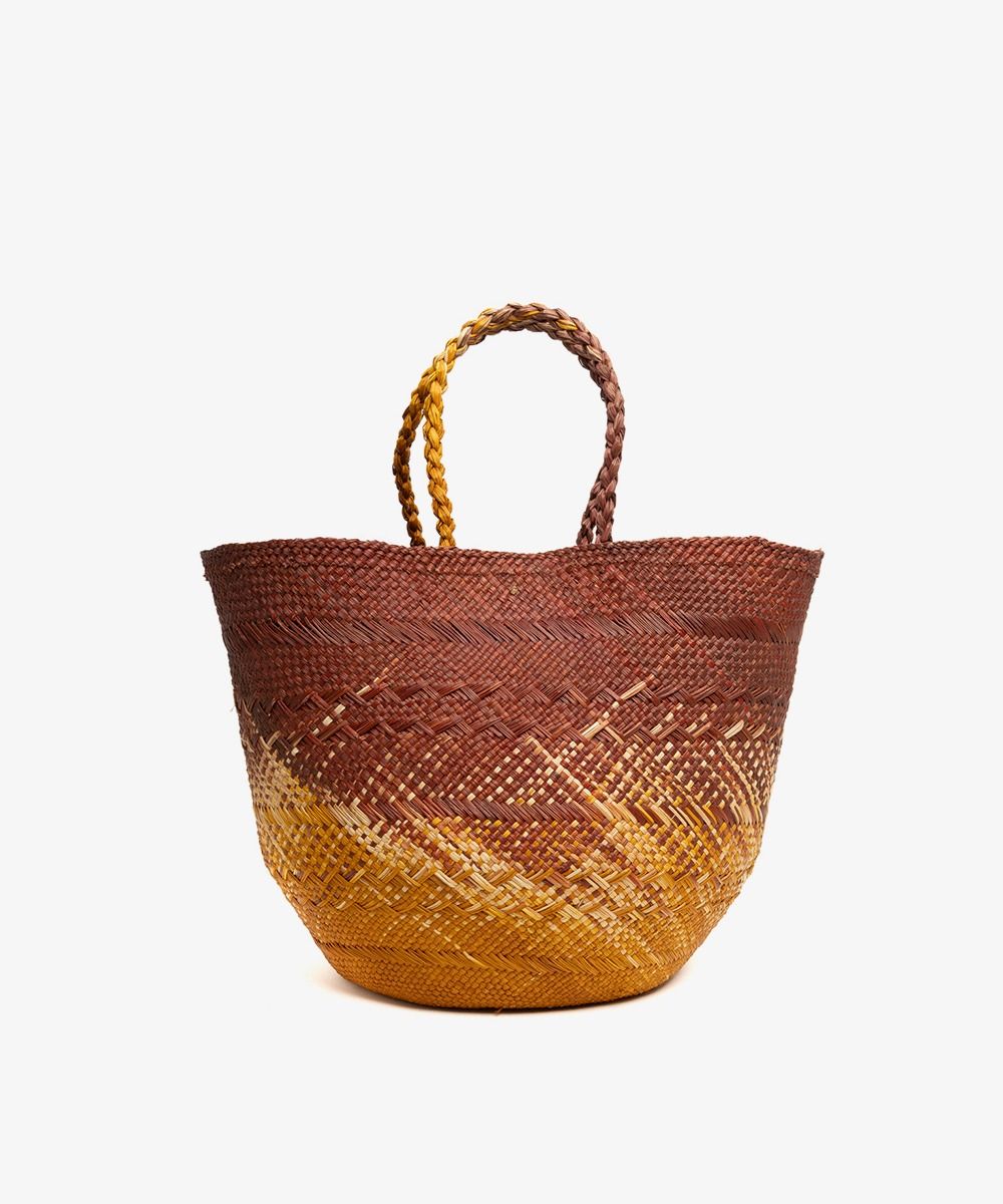 Nuestros complementos están hechos a mano por artesanas utilizando la técnica de tejido en iraca, típica de la tradición colombiana. La iraca, o paja toquilla, es una fibra natural que proviene de la “Carludovica palmata”, de cuyas hojas se obtienen unos finos hilos que son teñidos para darles color. Una vez secos, los artesanos entretejen los hilos con los diferentes colores para crear nuestros cestos.