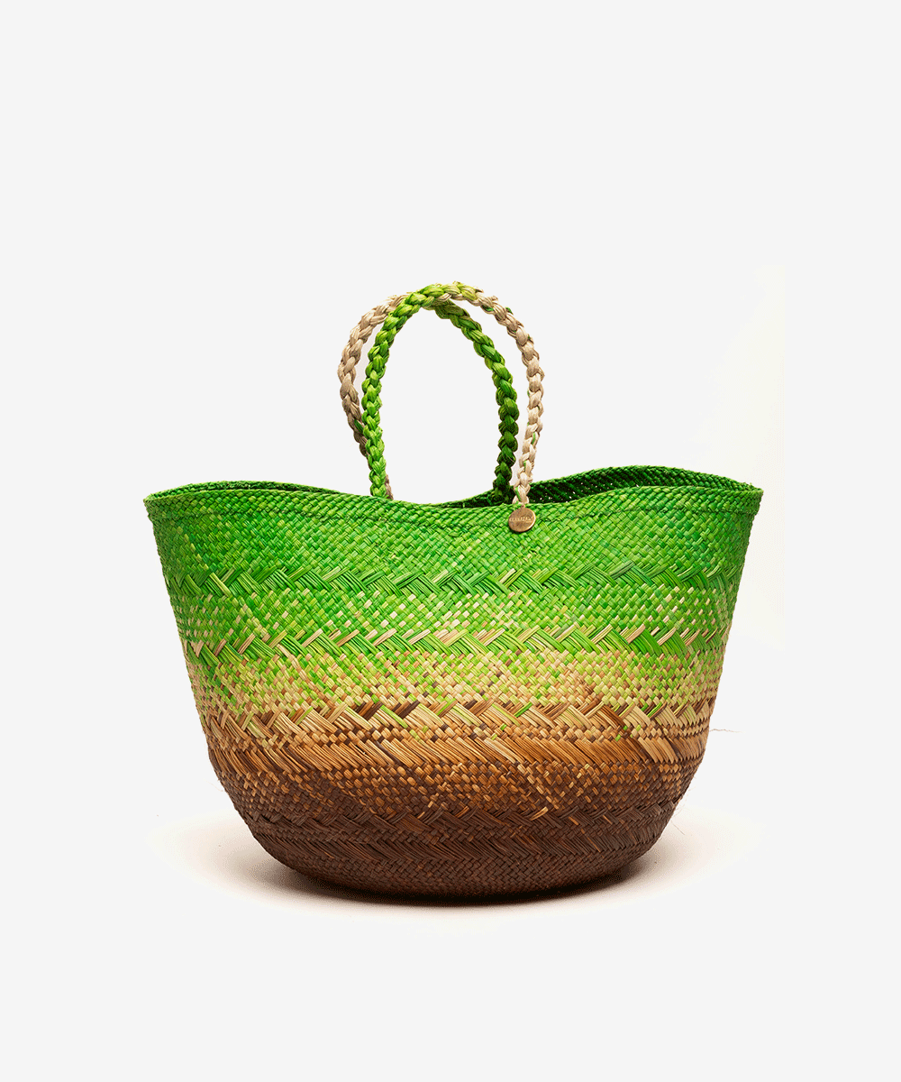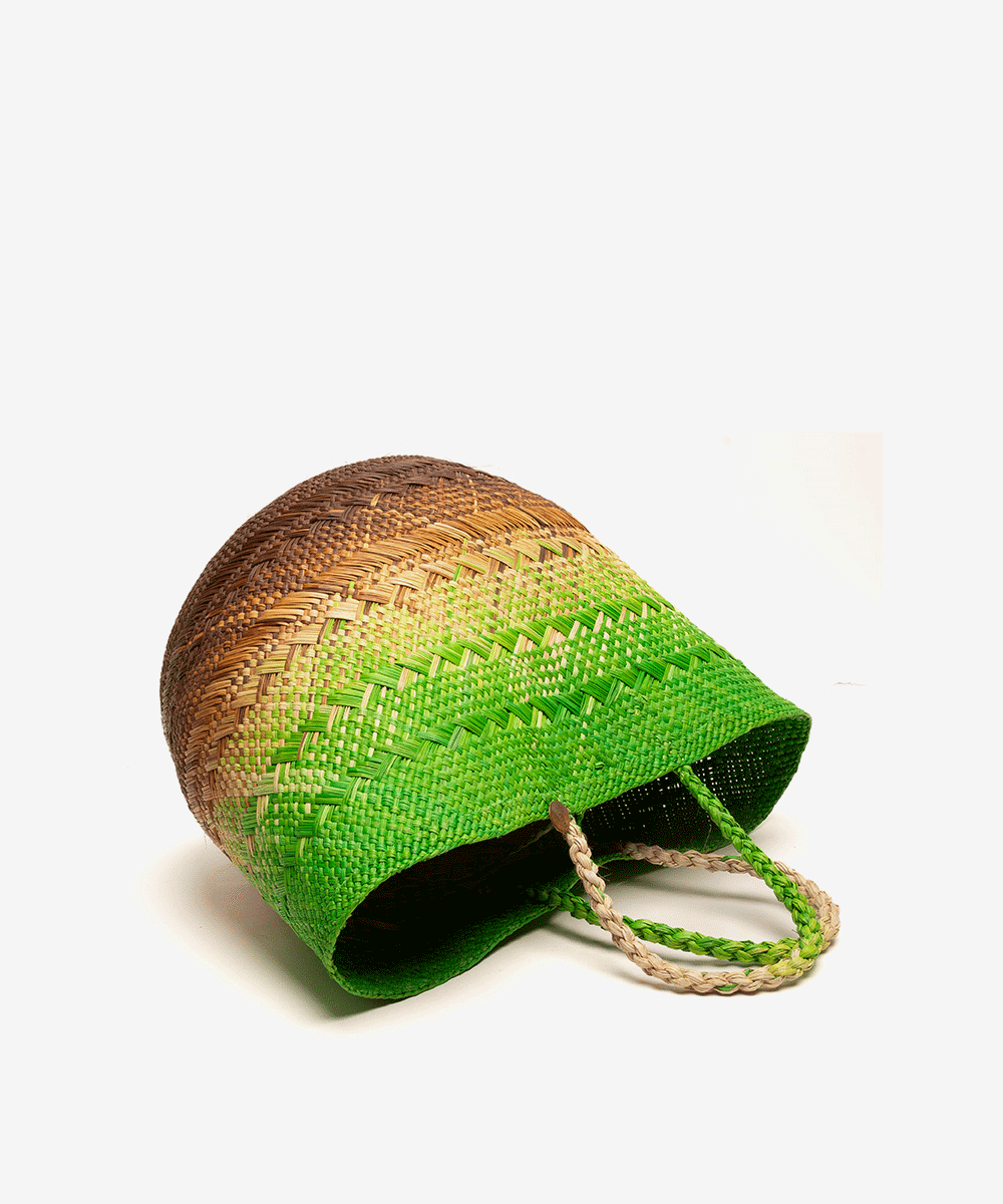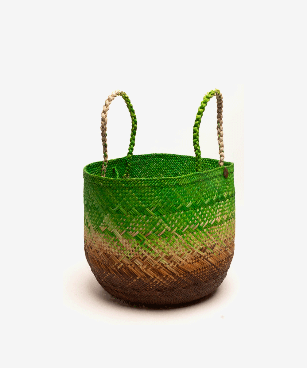 Nuestros complementos están hechos a mano por artesanas utilizando la técnica de tejido en iraca, típica de la tradición colombiana. La iraca, o paja toquilla, es una fibra natural que proviene de la “Carludovica palmata”, de cuyas hojas se obtienen unos finos hilos que son teñidos para darles color. Una vez secos, los artesanos entretejen los hilos con los diferentes colores para crear nuestros cestos.