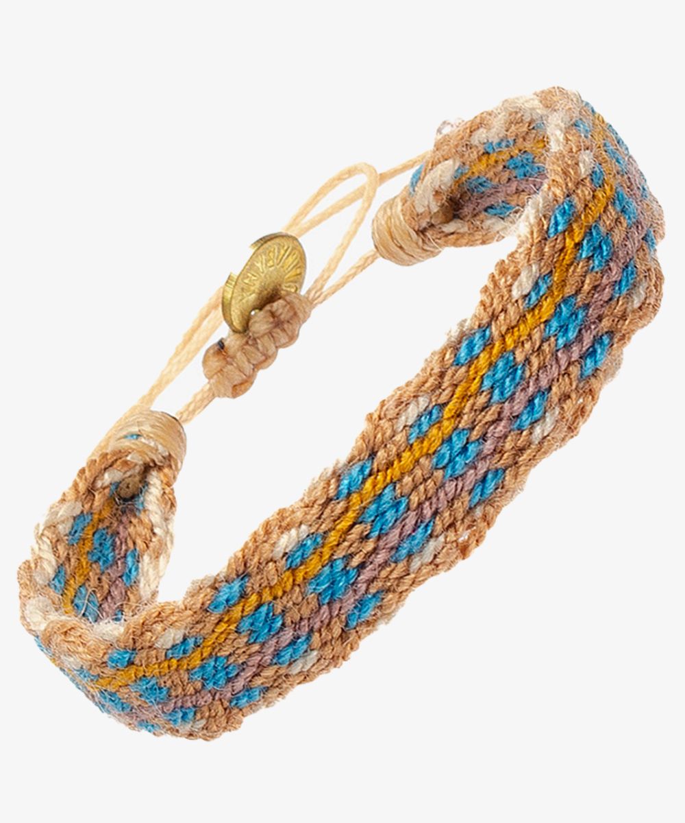 Add a vibrant touch of colour to your look with the CAPTAIN bracelet, an original creation by Guanábana. The colourful geometric patterns are designed in Madrid and our bracelets are entirely hand-woven by Colombian artisans. The opening of the bracelet adjusts to your wrist and is adorned with a medallion on which is inscribed our mantra: Be positive! Our advice: mix and match this bracelet with the rest of our collection to create a unique combination.