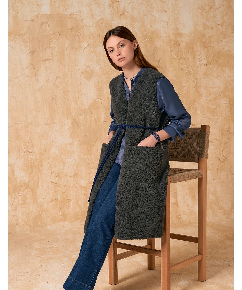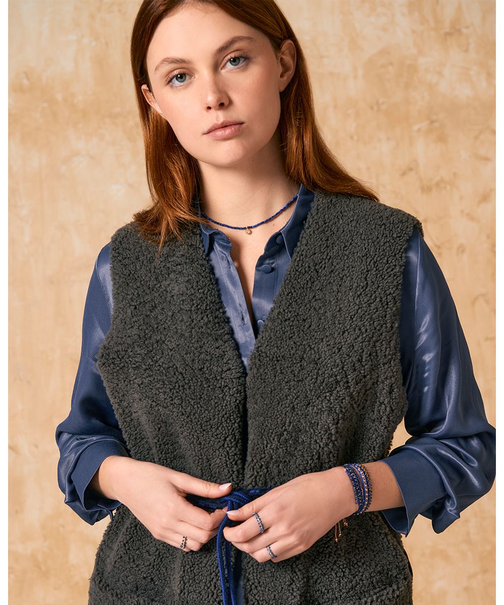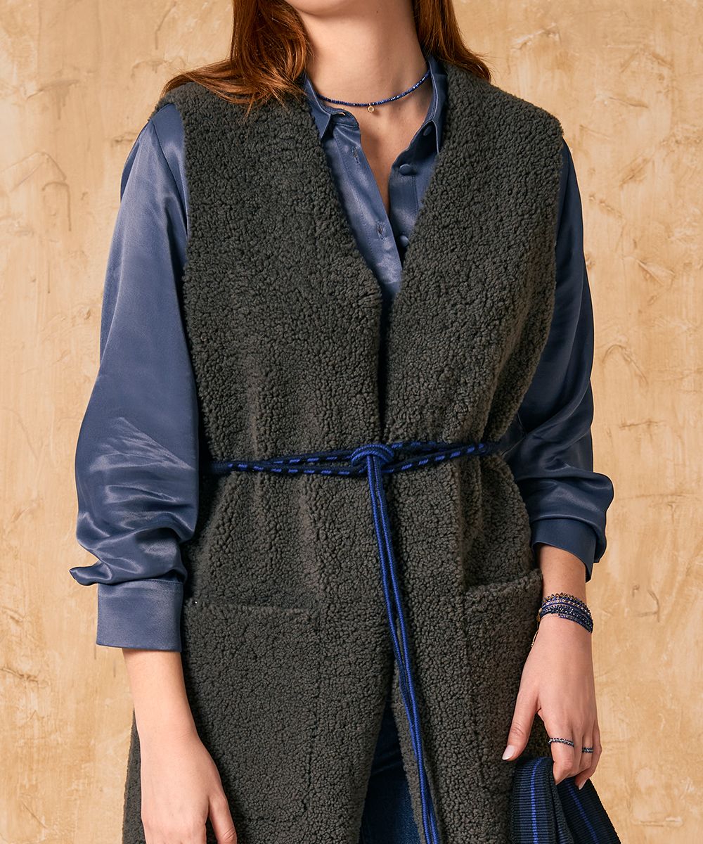 Lo que hace verdaderamente especial a esta piel es su proceso de curtiduría artesanal, que nos permite seleccionar cuidadosamente cada pieza por su rizo, borla y color únicos. El resultado es un chaleco suave al tacto pero robusto, confeccionado a partir de las mejores pieles de cordero empleadas en la industria.