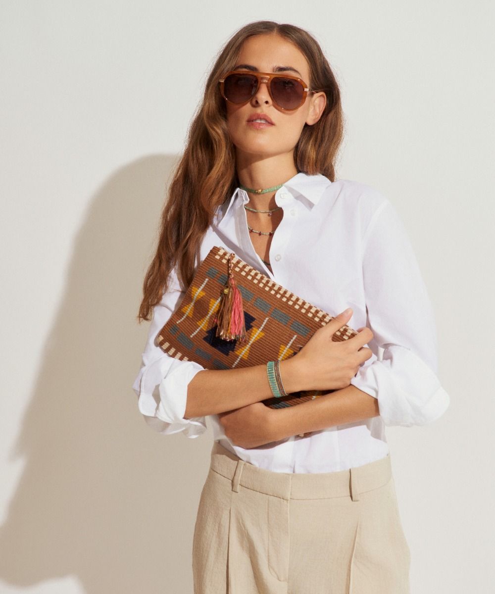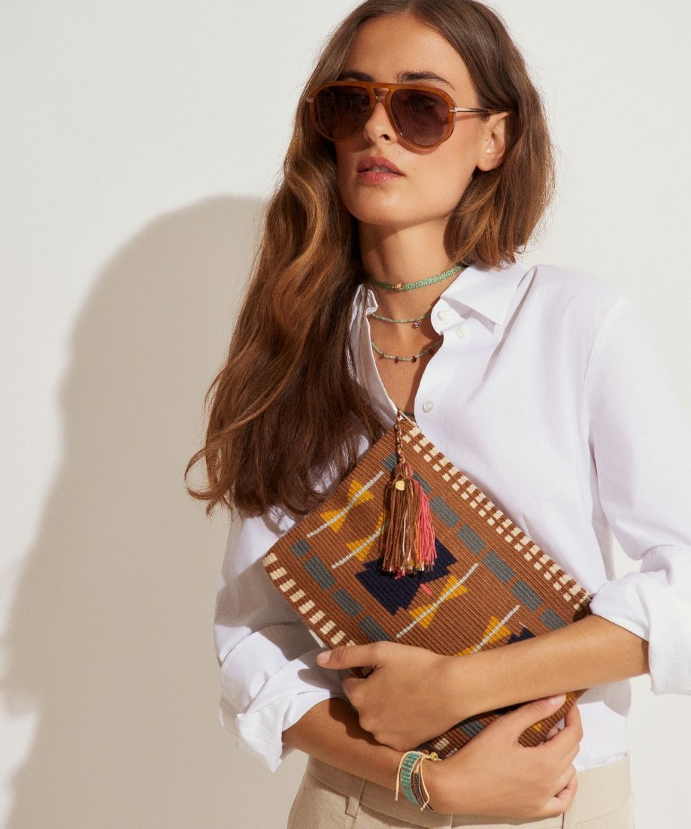 GUANABANA se reinventa el bolso de mano tradicional y lo convierte en el lo-quiero-tener-ya de tu armario. Es el modelo que más desafíos ha representado, y por lo tanto uno de los que más nos enorgullece, porque las artesanas Wayuu en Colombia nunca habían tejido modelos cuadrados. Alucinante y provocador, este bolso de mano abrió un nuevo universo de posibilidades a las artesanas que se atrevieron a cambiar y a crear esta pieza única en su género. Este bolso cierra con dos pompones tejidos y nuestro sello en bronce con el leitmotiv de GUANABANA: BE POSITIVE.