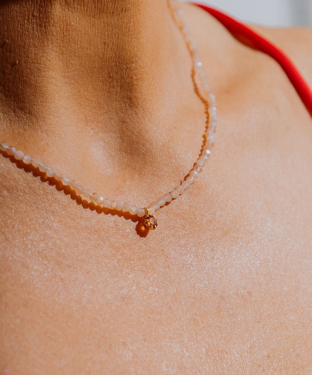 Tan antigua como la luna misma, la piedra luna contiene el poder del misterio. Sus secretos están encerrados bajo un velo nacarado, y con ellos, nuestras propias verdades ocultas. También es la piedra del amor.