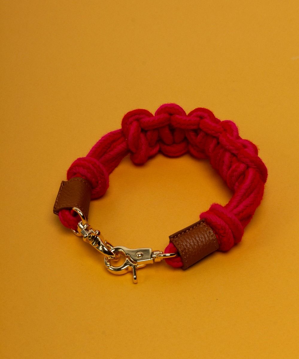 Material: tejido en acrílico y hebilla de zamak con capa de barniz.