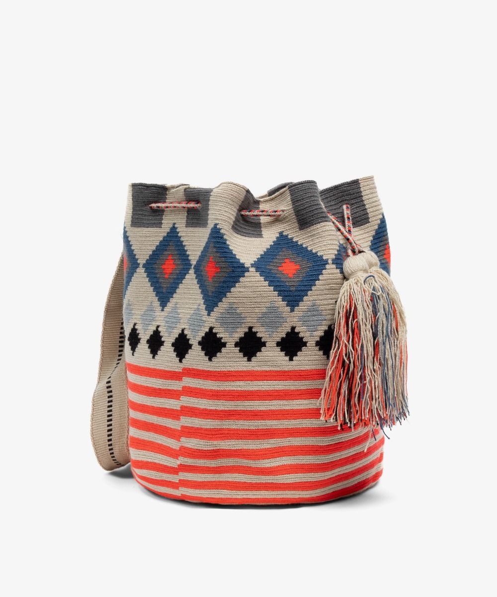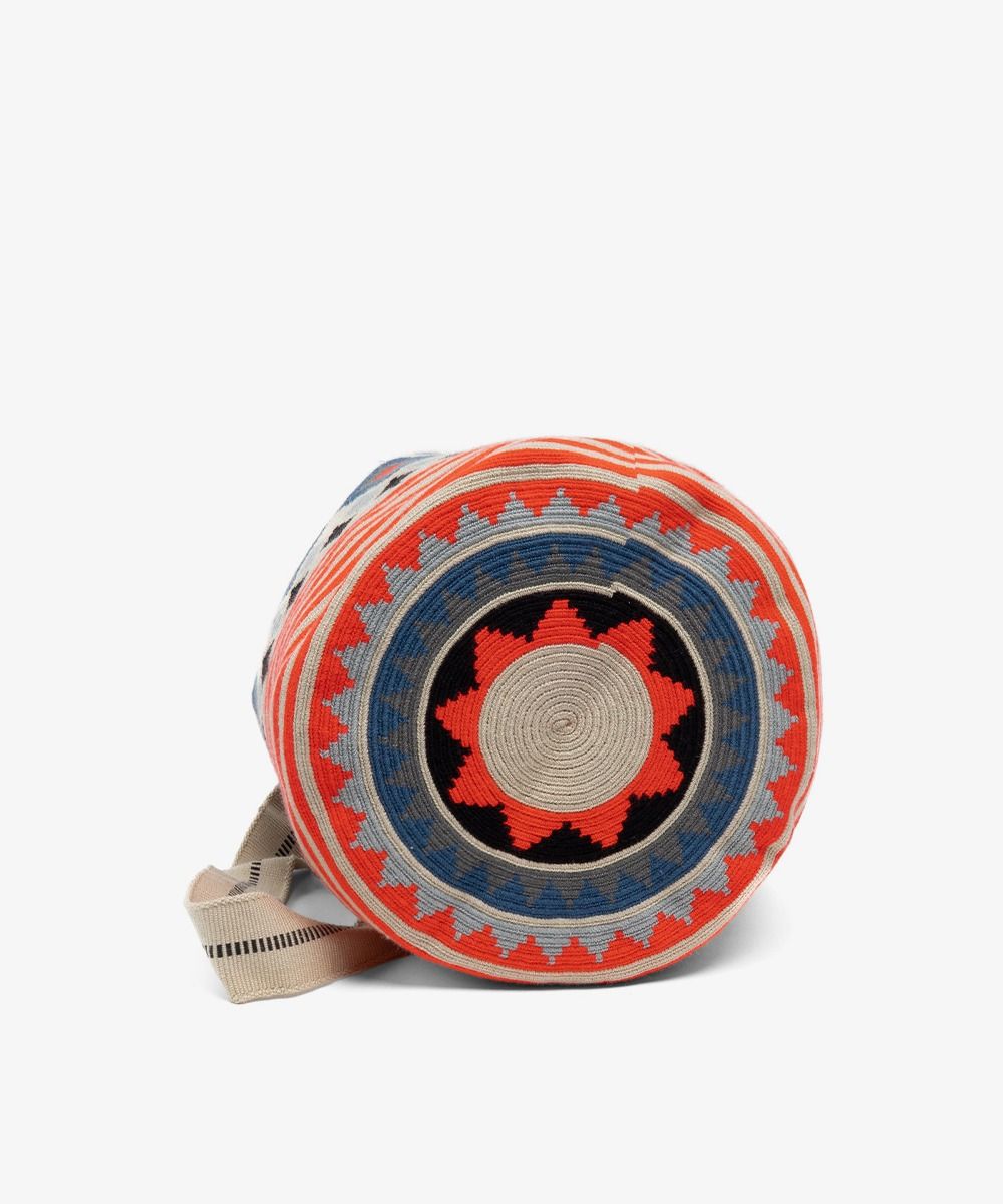 DISEÑADO EN MADRID - 100% HECHO A MANO POR ARTESANAS EN COLOMBIA. GUANÁBANA CREE EN LAS PEQUEÑAS DIFERENCIAS: LOS TAMAÑOS Y DISEÑOS PUEDEN TENER LIGERAS VARIACIONES CON EL MODELO DE LA FOTO. LAVADO A MÁQUINA EN AGUA FRÍA. Material: 100% acrílico Dimensión aproximada: Altura: 25 cm Diámetro: 25 cm Asa: 110 cm