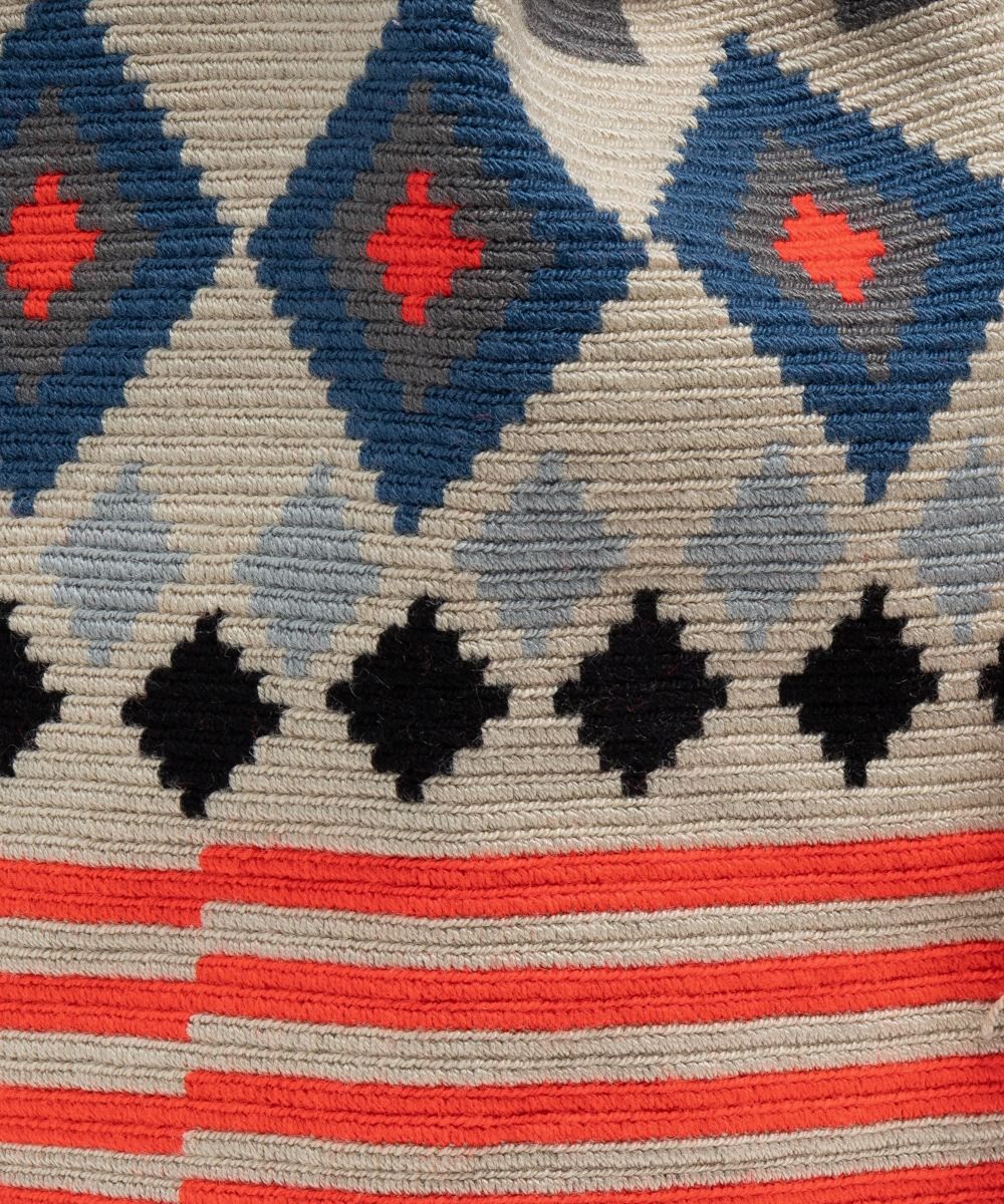 Este bolso es el símbolo del inicio de la relación de amor entre GUANÁBANA y las artesanas Wayuu en Colombia. Con él inicia la apuesta de aplicar un diseño europeo a las artesanías del mundo. El cambio en las figuras y colores han convertido a este bolso en un coleccionable. Su asa larga tejida permite usarlo como bandolera en cualquier ocasión. Revisa su base, no hay dos iguales. No te lo pierdas. Este bolso cierra con dos pompones tejidos y nuestro sello en bronce con el leitmotiv de GUANABANA: BE POSITIVE.