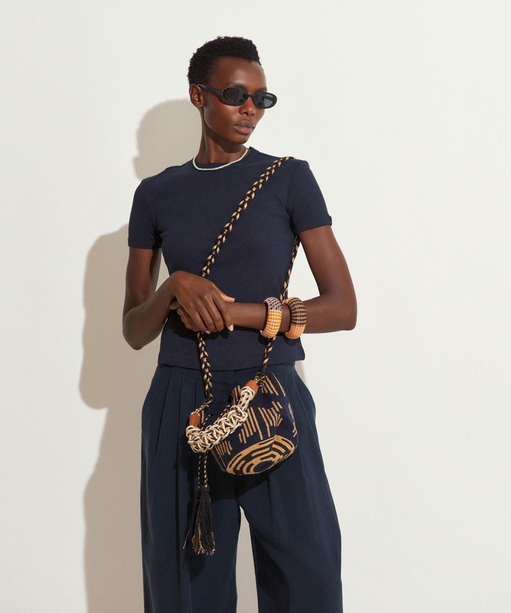 Gracias a las manos de cientos de mujeres Wayuu en Colombia y a los diseñadores de GUANÁBANA en Madrid, nuestro bolso clásico se presenta en una versión más pequeña. Tejido a mano por artesanas en Colombia, los colores y patrones de este bolso, y su asa larga, lo convierten en un imprescindible que puedes usar en cualquiera ocasión. Revisa su base y admira las diferencias que trae cada uno de ellos. Este bolso cierra con dos pompones tejidos y nuestro sello en bronce con el leitmotiv de GUANABANA: BE POSITIVE.