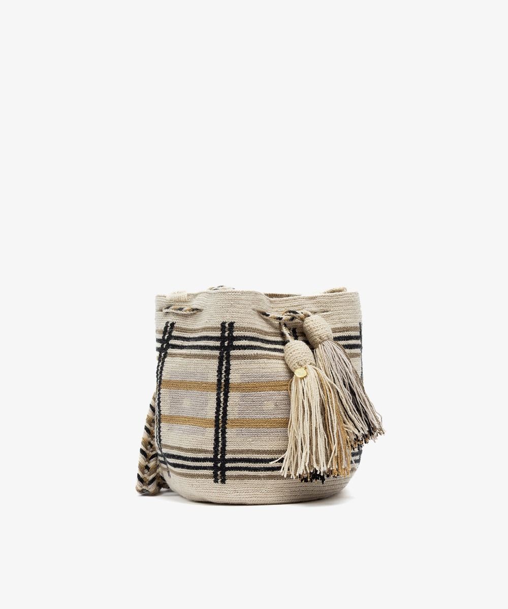 Gracias a las manos de cientos de mujeres Wayuu en Colombia y a los diseñadores de GUANÁBANA en Madrid, nuestro bolso clásico se presenta en una versión más pequeña. Tejido a mano por artesanas en Colombia, los colores y patrones de este bolso, y su asa larga, lo convierten en un imprescindible que puedes usar en cualquiera ocasión. Revisa su base y admira las diferencias que trae cada uno de ellos. Este bolso cierra con dos pompones tejidos y nuestro sello en bronce con el leitmotiv de GUANABANA: BE POSITIVE.