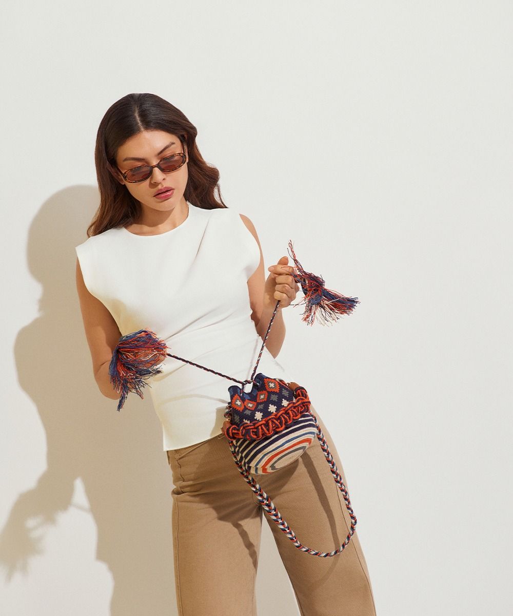 Gracias a las manos de cientos de mujeres Wayuu en Colombia y a los diseñadores de GUANÁBANA en Madrid, nuestro bolso clásico se presenta en una versión más pequeña. Tejido a mano por artesanas en Colombia, los colores y patrones de este bolso, y su asa larga, lo convierten en un imprescindible que puedes usar en cualquiera ocasión. Revisa su base y admira las diferencias que trae cada uno de ellos. Este bolso cierra con dos pompones tejidos y nuestro sello en bronce con el leitmotiv de GUANABANA: BE POSITIVE.