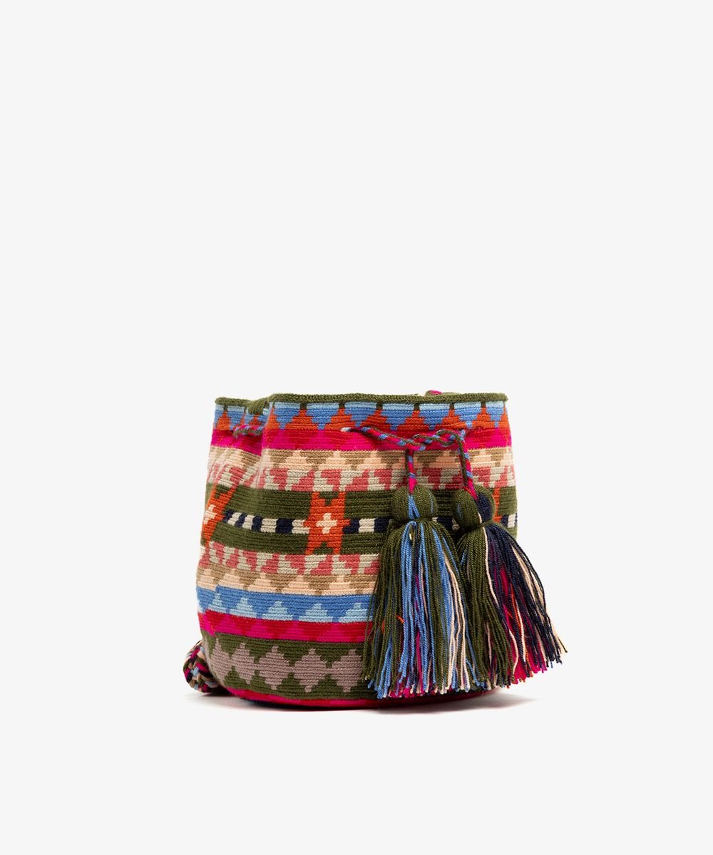 Gracias a las manos de cientos de mujeres Wayuu en Colombia y a los diseñadores de GUANÁBANA en Madrid, nuestro bolso clásico se presenta en una versión más pequeña. Tejido a mano por artesanas en Colombia, los colores y patrones de este bolso, y su asa larga, lo convierten en un imprescindible que puedes usar en cualquiera ocasión. Revisa su base y admira las diferencias que trae cada uno de ellos. Este bolso cierra con dos pompones tejidos y nuestro sello en bronce con el leitmotiv de GUANABANA: BE POSITIVE.