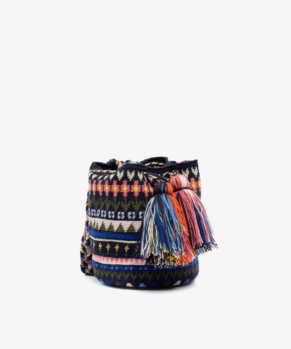 Gracias a las manos de cientos de mujeres Wayuu en Colombia y a los diseñadores de GUANÁBANA en Madrid, nuestro bolso clásico se presenta en una versión más pequeña. Tejido a mano por artesanas en Colombia, los colores y patrones de este bolso, y su asa larga, lo convierten en un imprescindible que puedes usar en cualquiera ocasión. Revisa su base y admira las diferencias que trae cada uno de ellos. Este bolso cierra con dos pompones tejidos y nuestro sello en bronce con el leitmotiv de GUANABANA: BE POSITIVE.