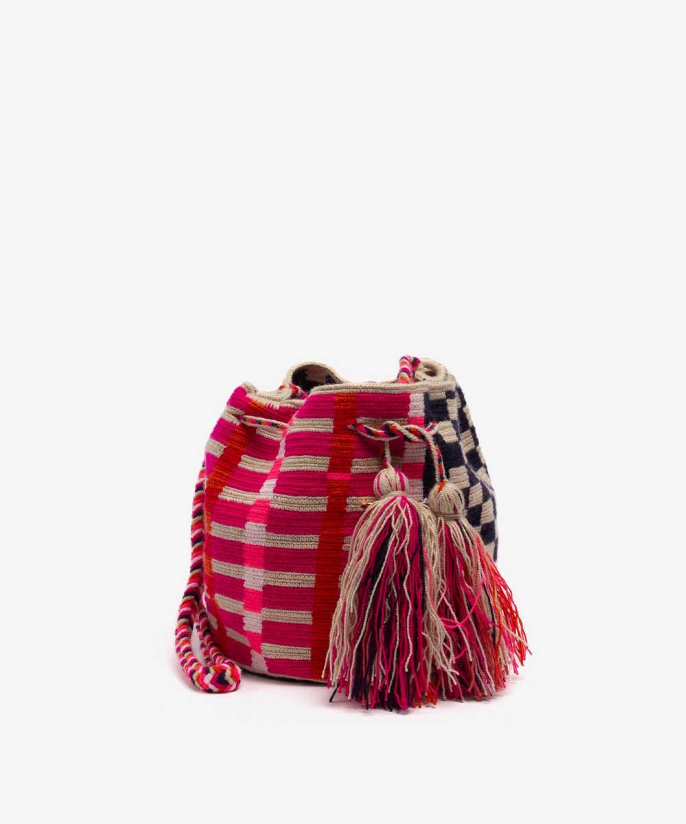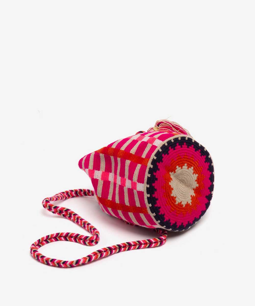 Gracias a las manos de cientos de mujeres Wayuu en Colombia y a los diseñadores de GUANÁBANA en Madrid, nuestro bolso clásico se presenta en una versión más pequeña. Tejido a mano por artesanas en Colombia, los colores y patrones de este bolso, y su asa larga, lo convierten en un imprescindible que puedes usar en cualquiera ocasión. Revisa su base y admira las diferencias que trae cada uno de ellos. Este bolso cierra con dos pompones tejidos y nuestro sello en bronce con el leitmotiv de GUANABANA: BE POSITIVE.