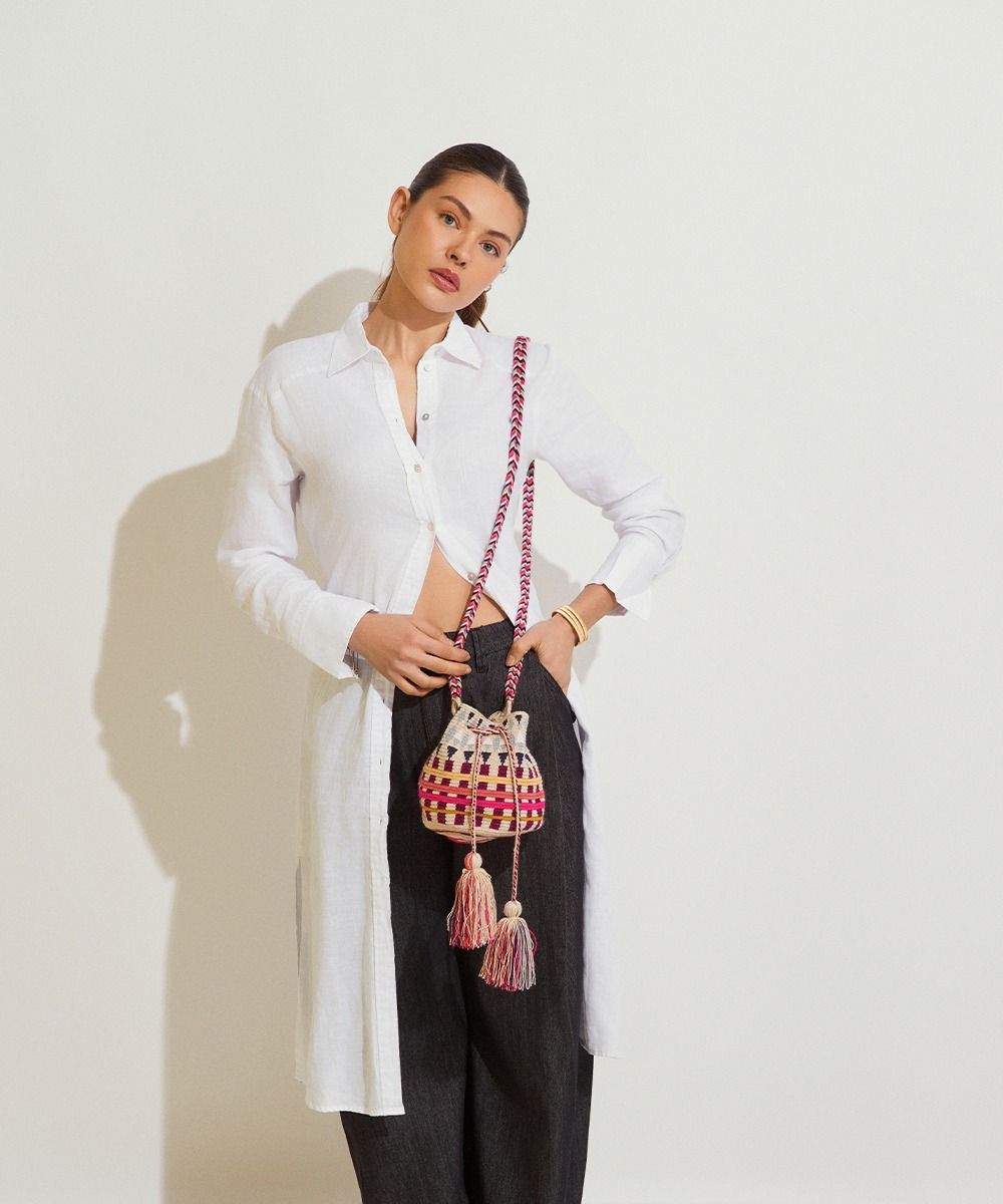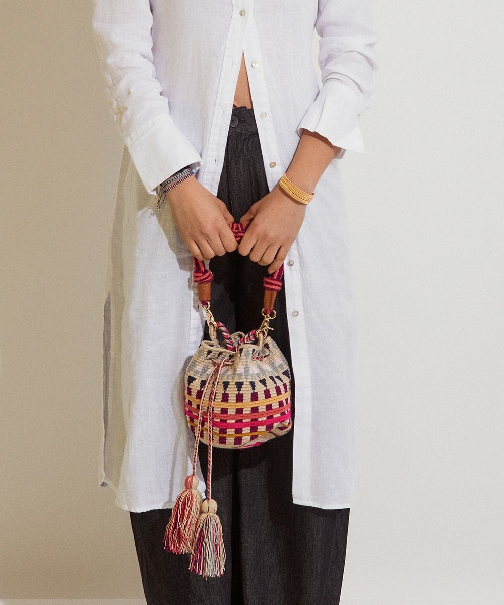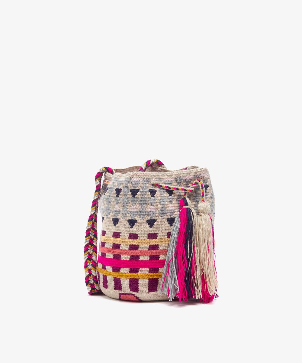 Gracias a las manos de cientos de mujeres Wayuu en Colombia y a los diseñadores de GUANÁBANA en Madrid, nuestro bolso clásico se presenta en una versión más pequeña. Tejido a mano por artesanas en Colombia, los colores y patrones de este bolso, y su asa larga, lo convierten en un imprescindible que puedes usar en cualquiera ocasión. Revisa su base y admira las diferencias que trae cada uno de ellos. Este bolso cierra con dos pompones tejidos y nuestro sello en bronce con el leitmotiv de GUANABANA: BE POSITIVE.