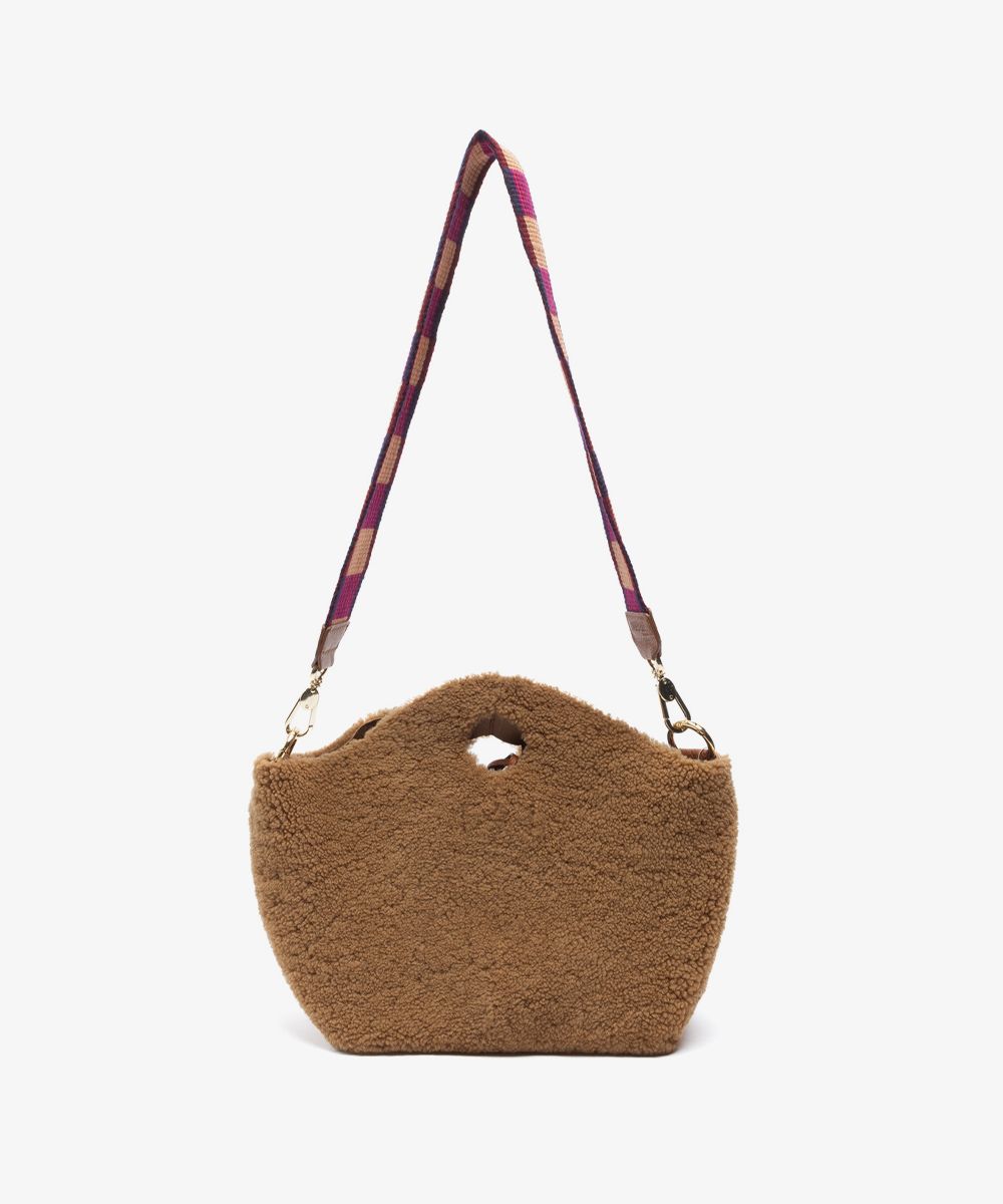 Lo que hace verdaderamente especial a esta piel es su proceso de curtiduría artesanal, que nos permite seleccionar cuidadosamente cada pieza por su rizo, borla y color únicos. El resultado es un bolso suave al tacto, pero robusto, confeccionado a partir de las mejores pieles de cordero empleadas en la industria.