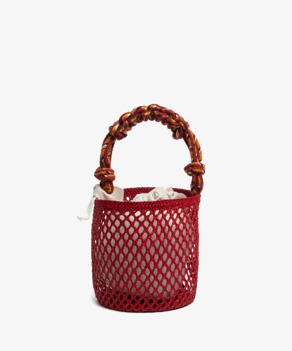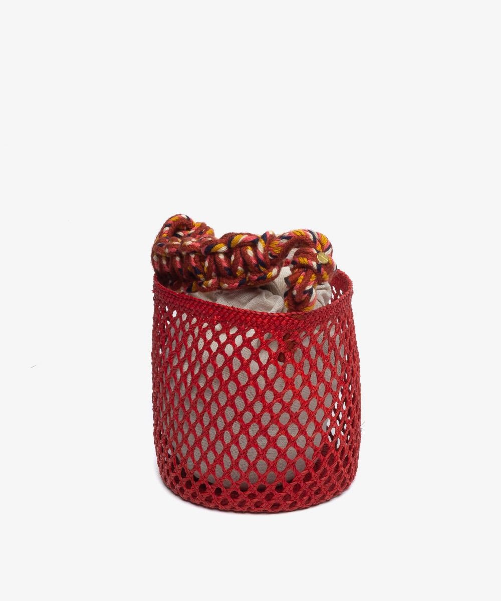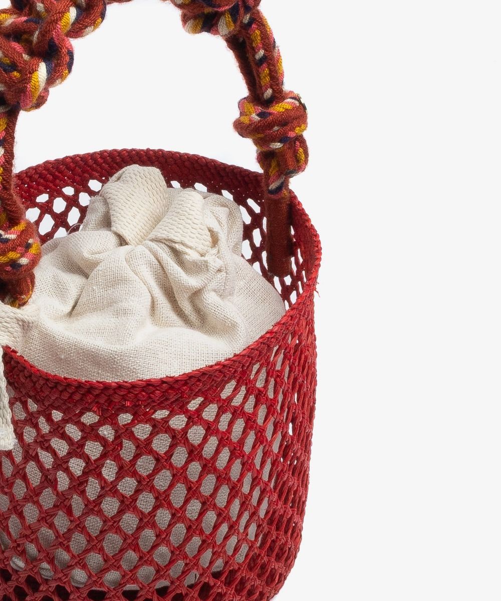 Cesta: 100 % fibra natural. Bolsa: 100 % algodón reciclado. Asas: 100 % acrílico. - Altura: 17 cm. - Longitud de las asas: 16 cm. - Diámetro de la abertura: 12 cm - Cada bolsa es única y está totalmente hecha a mano, por lo que puede haber ligeras variaciones en la forma o el tamaño. Lavable a máquina en agua fría. No lavable a máquina, lavar con un paño húmedo.