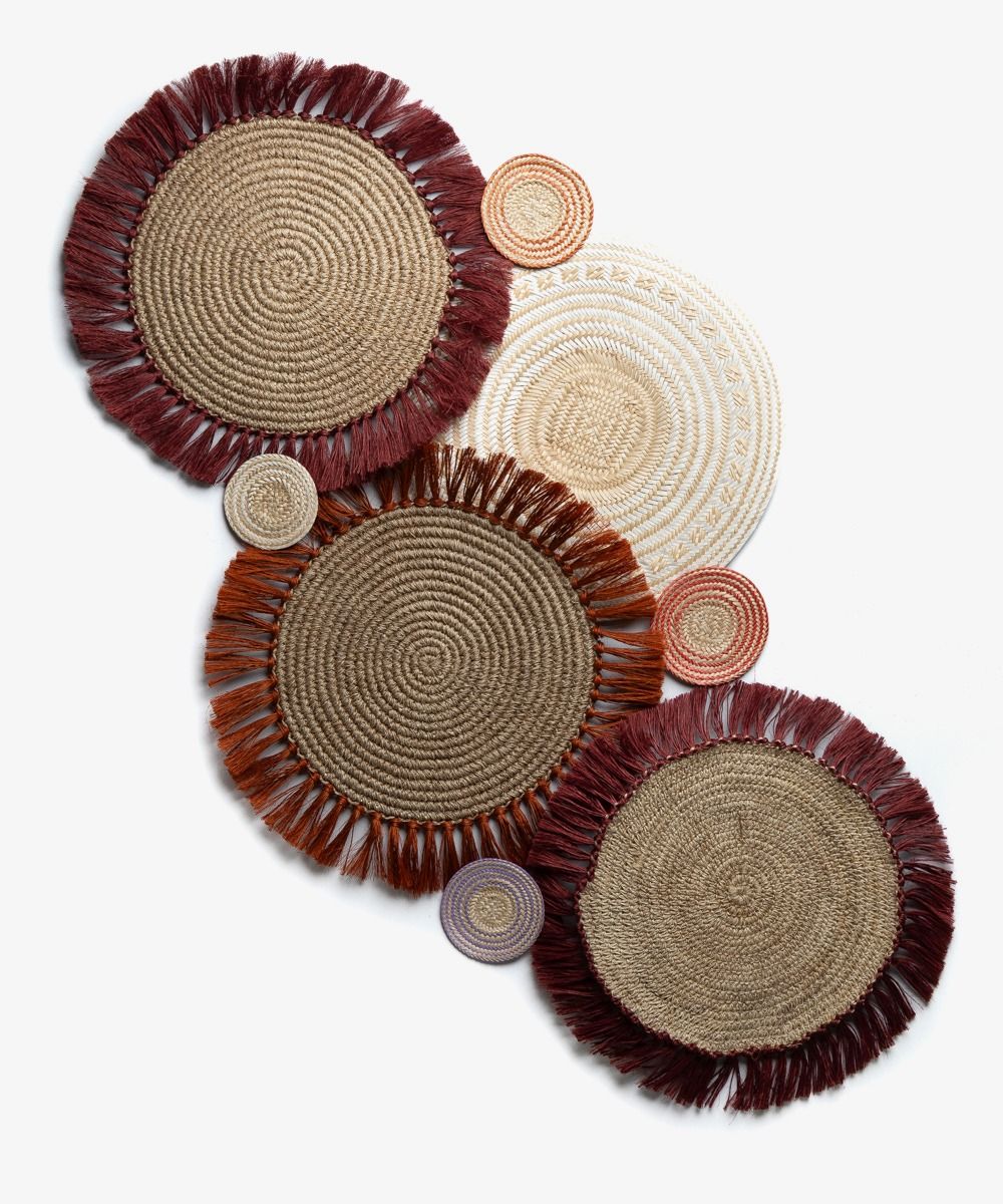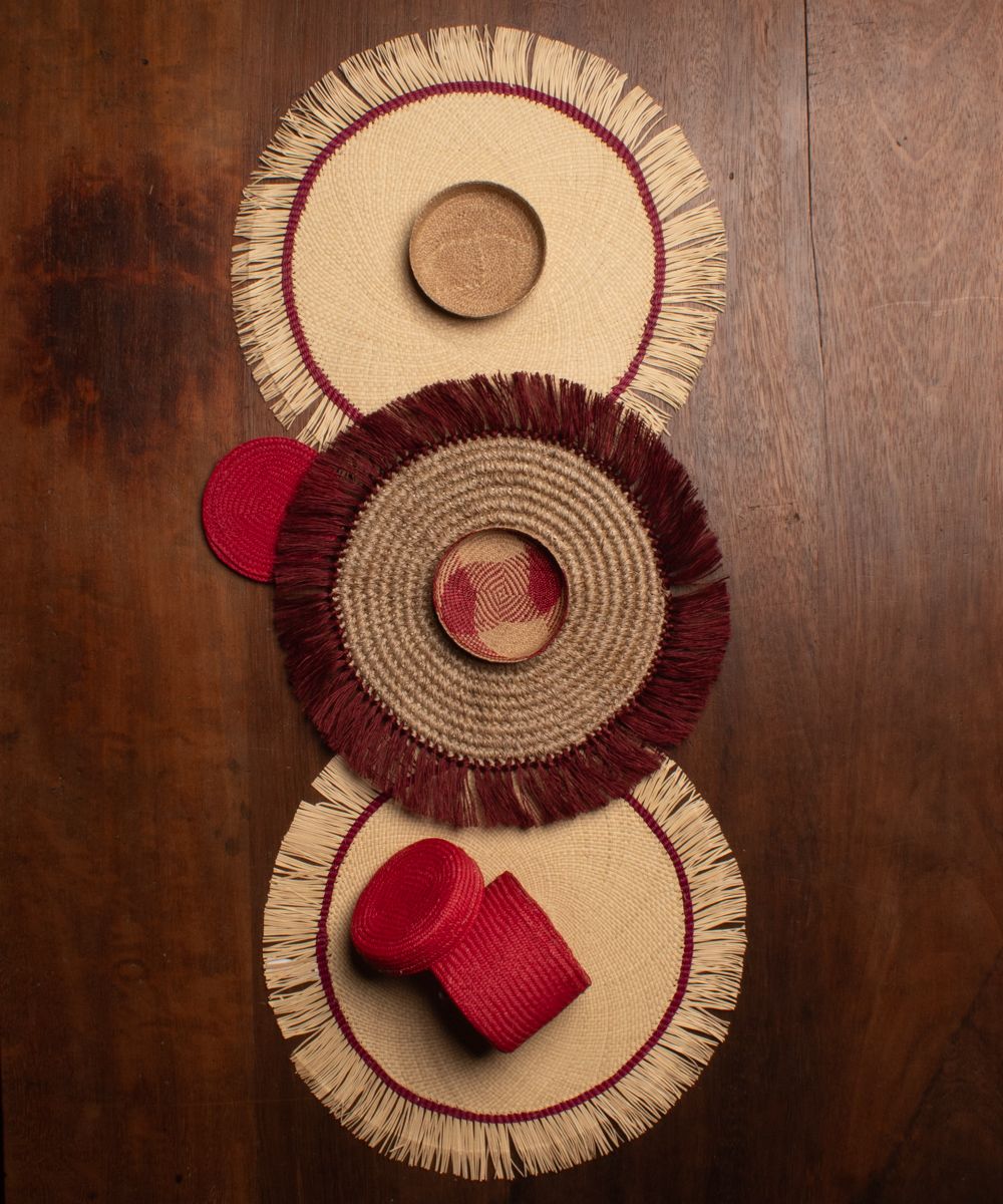 Nuestros individuales de fique son un accesorio que combina el diseño de moda español con las técnicas de manufactura ancestrales de la tradición colombiana. Están hechos totalmente a mano por artesanas utilizando fique, una fibra natural que proviene de la planta Furcraea bendighausii. Las artesanas recolectan sus hojas para obtener unos hilos finos con los que tejen numerosas artesanías como cestos, sombreros o bisutería. El resultado es un producto de alta calidad y atemporal, perfecto para añadir un toque étnico a tu mesa.