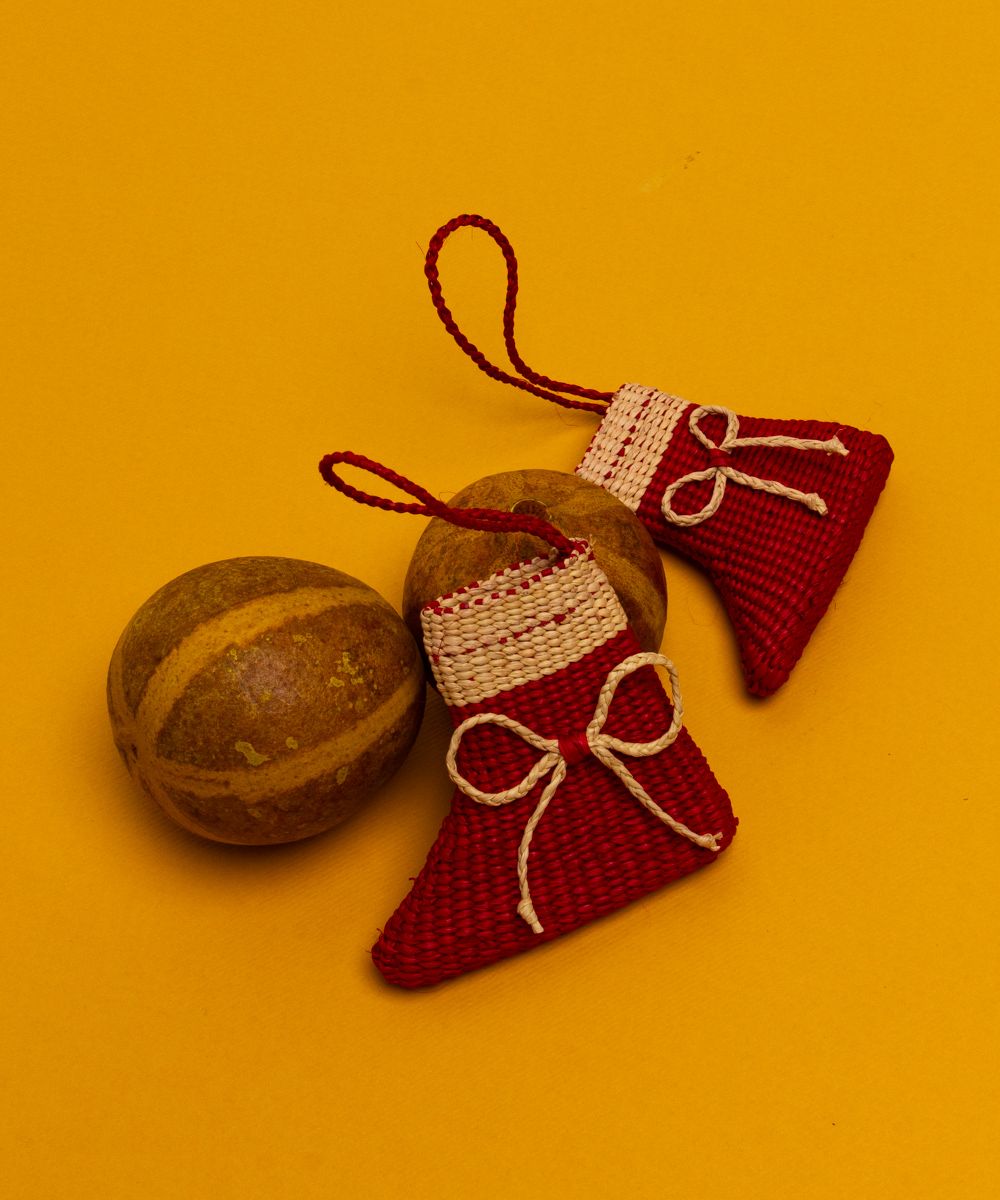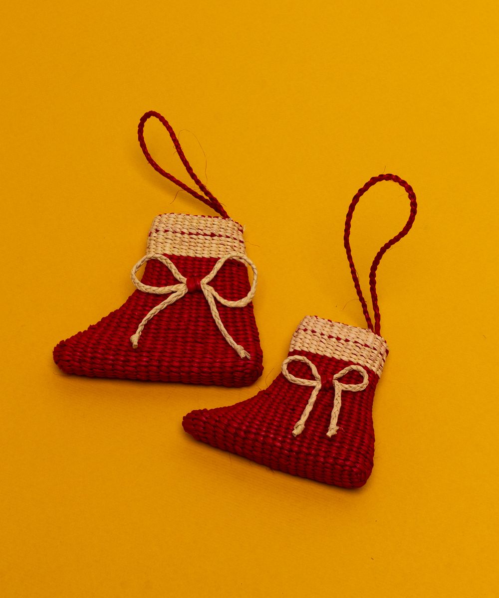 Nuestros adornos están hechos a mano por artesanas utilizando la técnica de tejido en iraca, típica de la tradición colombiana. La iraca, o paja toquilla, es una fibra natural que proviene de la “Carludovica palmata”, de cuyas hojas se obtienen unos finos hilos que son teñidos para darles color. Una vez secos, los artesanos entretejen los hilos con los diferentes colores para crear estos adornos de navidad.